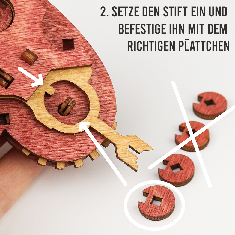 - 8 Wörter auf jedem der drei Zahnräder und mehr als 50 mögliche Kombinationen
