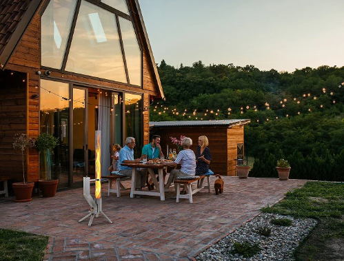 Betrieben wird es mit handelsüblichen Holzpellets, die eine saubere und effiziente Verbrennung gewährleisten. Der Aufbau dauert lediglich 5-10 Minuten, und mit einer Füllung brennt es etwa 75 Minuten. Ein integriertes Entleerungsfach erleichtert die Reinigung nach der Nutzung.