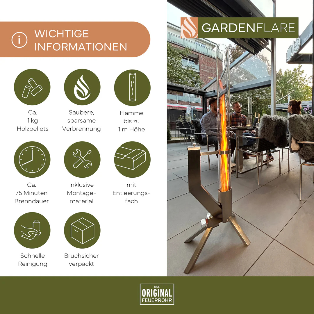 Ich bin total begeistert - was ein Produkt. Gemütliche Sommerabende sind gesichert! Das Feuerrohr macht durch die von Glas umhüllte Flamme ein super Bild im Garten. Ist jeden Cent wert!
