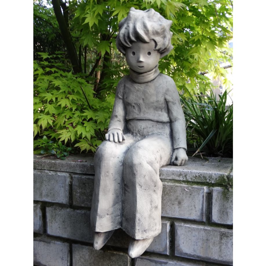 Dieser kleine Prinz, erschaffen von Antoine de Saint-Exupéry, ist aus Kunststein gefertigt und verschönert jeden Garten. Die besondere Form der Skulptur ist so gestaltet, dass der kleine Prinz an jeder beliebigen Kante Platz nehmen und die Welt um ihn herum bestaunen kann.