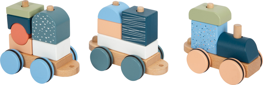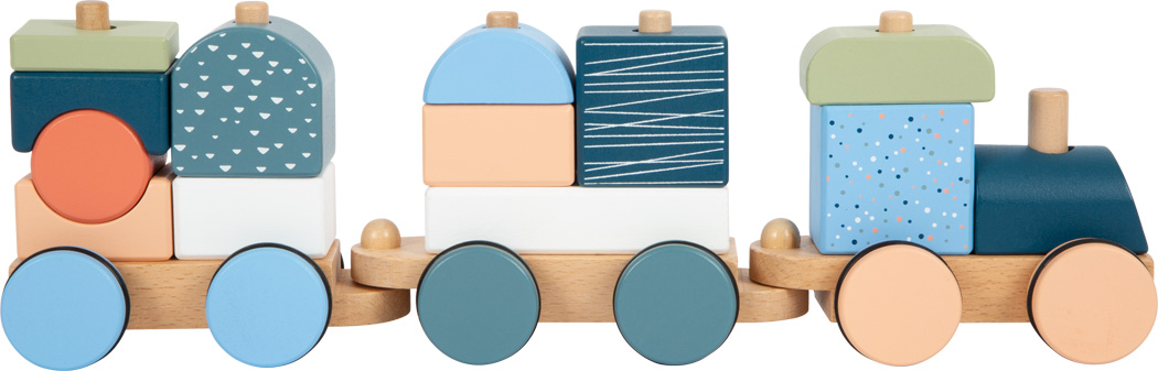 Auf große Reise durchs Kinderzimmer geht dieser Zug aus FSC® 100%-zertifiziertem Holz in zarten Trendfarben und mit arktischen Mustern, der aufgrund von gummierten Rädern geräuscharm unterwegs ist. Der detailreich gestaltete Zug, der gleichzeitig ein Steck- und Stapelspiel ist, bietet Kindern die Möglichkeit, ihn nach eigenen Ideen zusammen zu bauen.