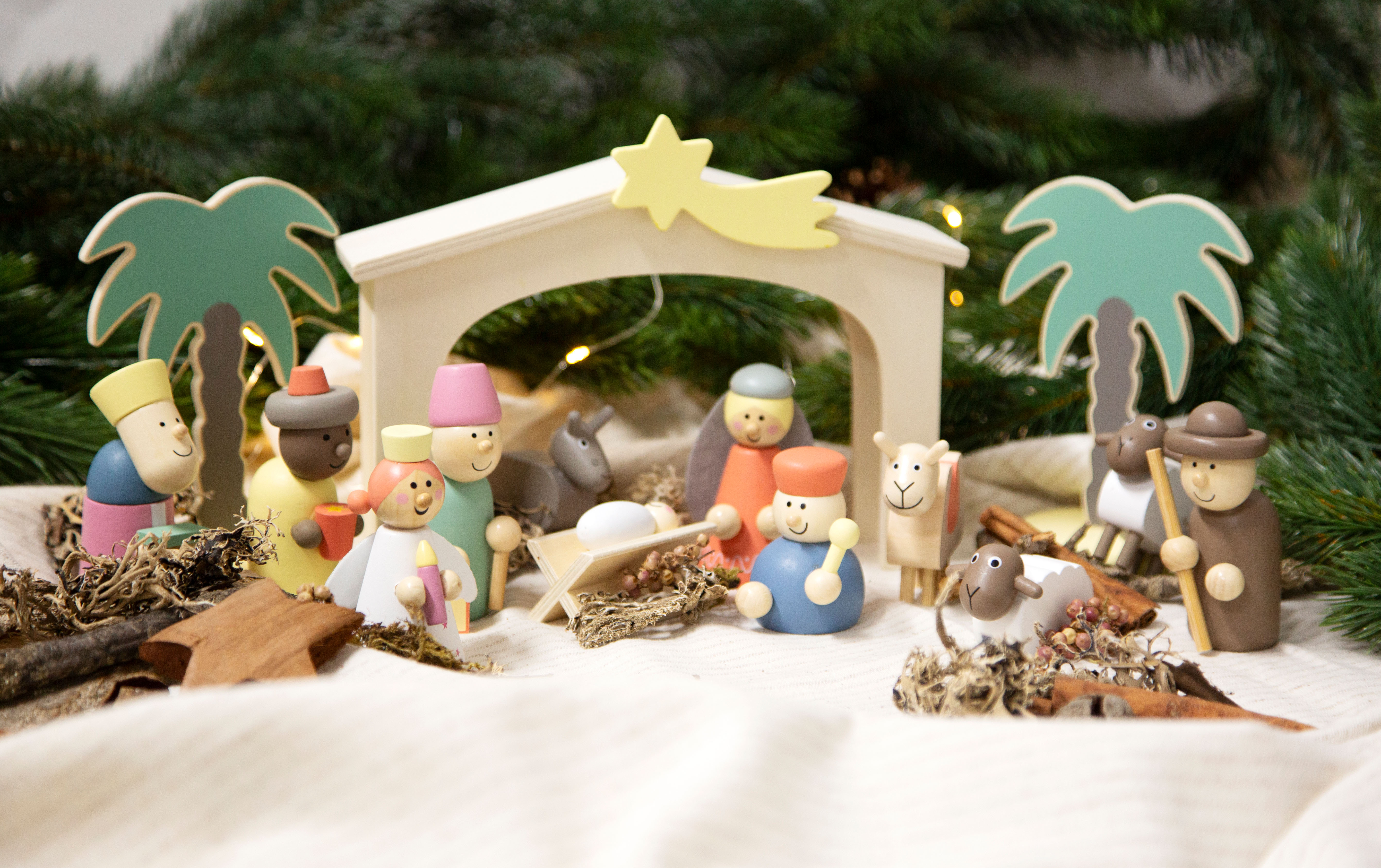 Die Krippe enthält alle wichtigen Figuren, die in der Weihnachtsgeschichte eine Rolle spielen. Alle Holzfiguren und Tiere sind detailreich und liebevoll gestaltet und liegen dank ihrer Form gut in der Hand. Sie animieren Kinder zum gemeinsamen Spielen und Erzählen von Geschichten. So wird die Wartezeit bis Weihnachten zu einem magischen Erlebnis.