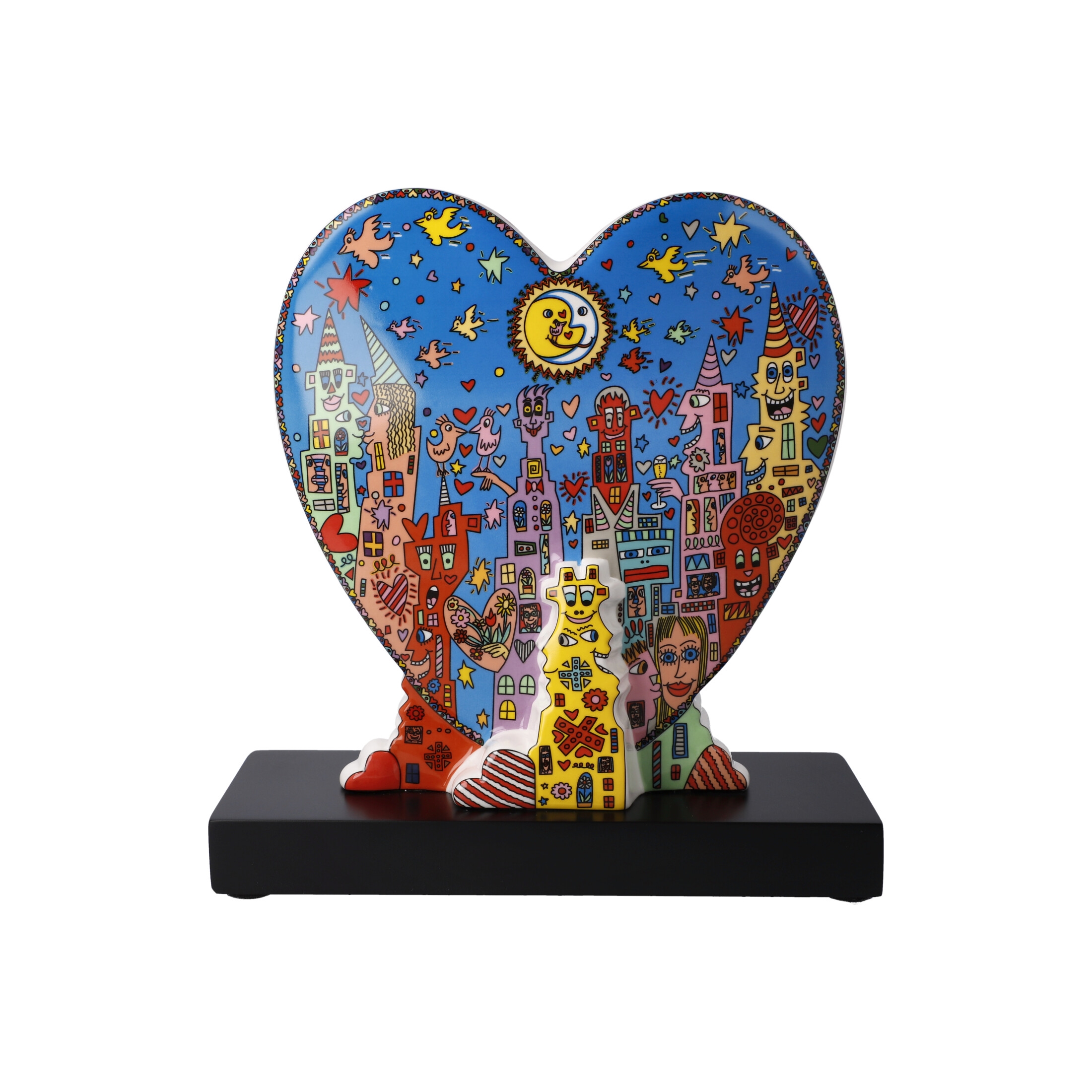 Tauchen Sie ein in die farbenfrohe Welt von James Rizzi! Die Figur „Heart Times in the City“ fängt auf einzigartige Weise das pulsierende Lebensgefühl New Yorks ein – der Stadt, die niemals schläft. Leuchtende Farben, fantasievolle Formen und die typischen Rizzi-Birds machen dieses Kunstobjekt zu einem echten Hingucker. Häuser, Sonne, Mond und Herzmotive tanzen über die Oberfläche und versprühen pure Lebensfreude.