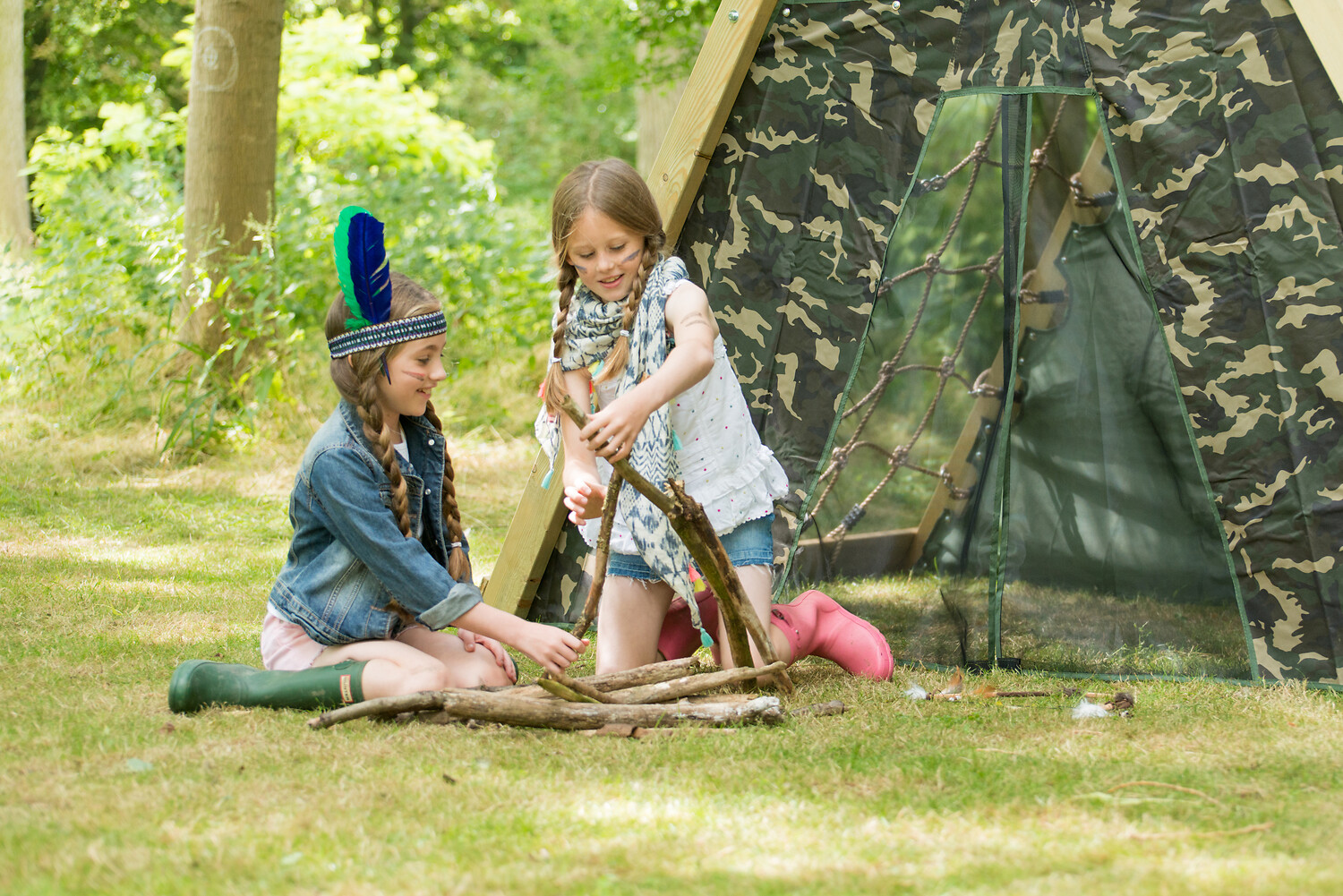 Unter der Plattform befindet sich ein großzügiger Spielraum, der mit textilen Seitenwänden im angesagten Camouflage-Look ausgestattet ist. Hier können die Kinder ihre Fantasie ausleben und sich in eine geheime Basis verwandeln.