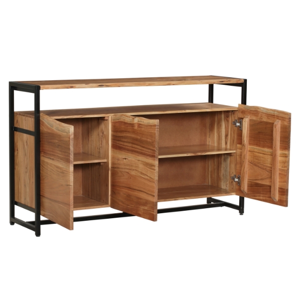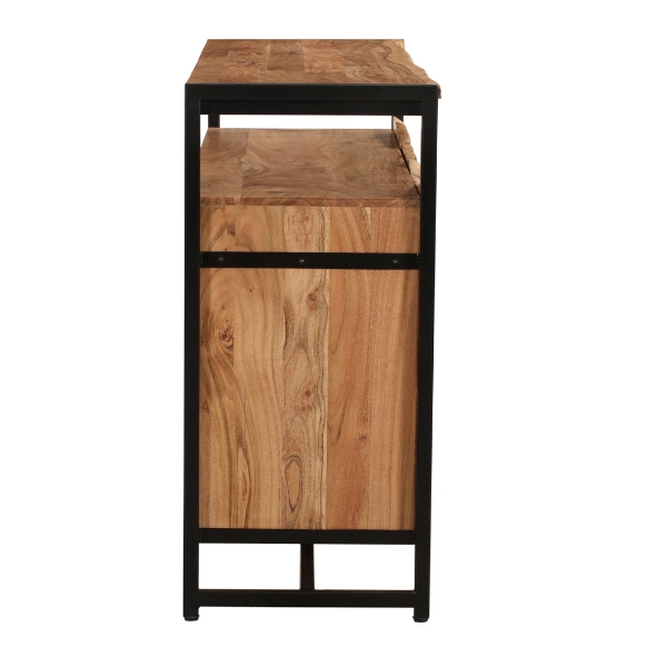 Das Sideboard MALA besticht durch eine Kombination aus Akazienholz und schwarzem pulverbeschichtetem Eisen. Mit seinem natürlichen Holzfinish und der robusten Stahlstruktur eignet es sich ideal als funktionales, stilvolles Möbelstück für verschiedene Wohnräume. Die schlichte Eleganz und die hohe Qualität der Materialien machen es zu einem vielseitigen Highlight im Zuhause.