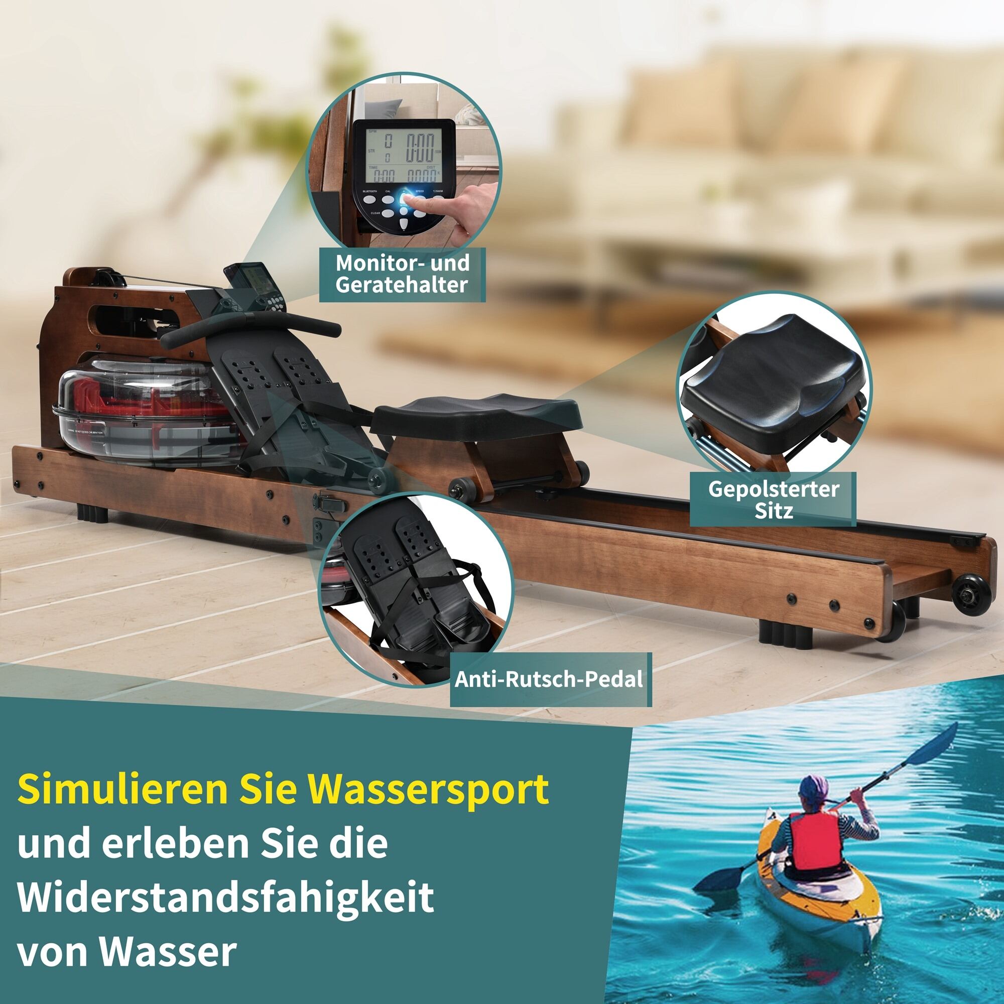 Mit unserem hölzernen Rudergerät mit Wasserwiderstand begibt man sich auf eine Fitnessreise. Dieses innovative Gerät bietet ein einzigartiges Trainingserlebnis, das sowohl effektiv als auch entspannend ist. Das einseitige Kupplungslager gewährleistet reibungslose Ruderbewegungen, während der flüsterleise Betrieb es ermöglicht, sich ungestört auf das Training zu konzentrieren.