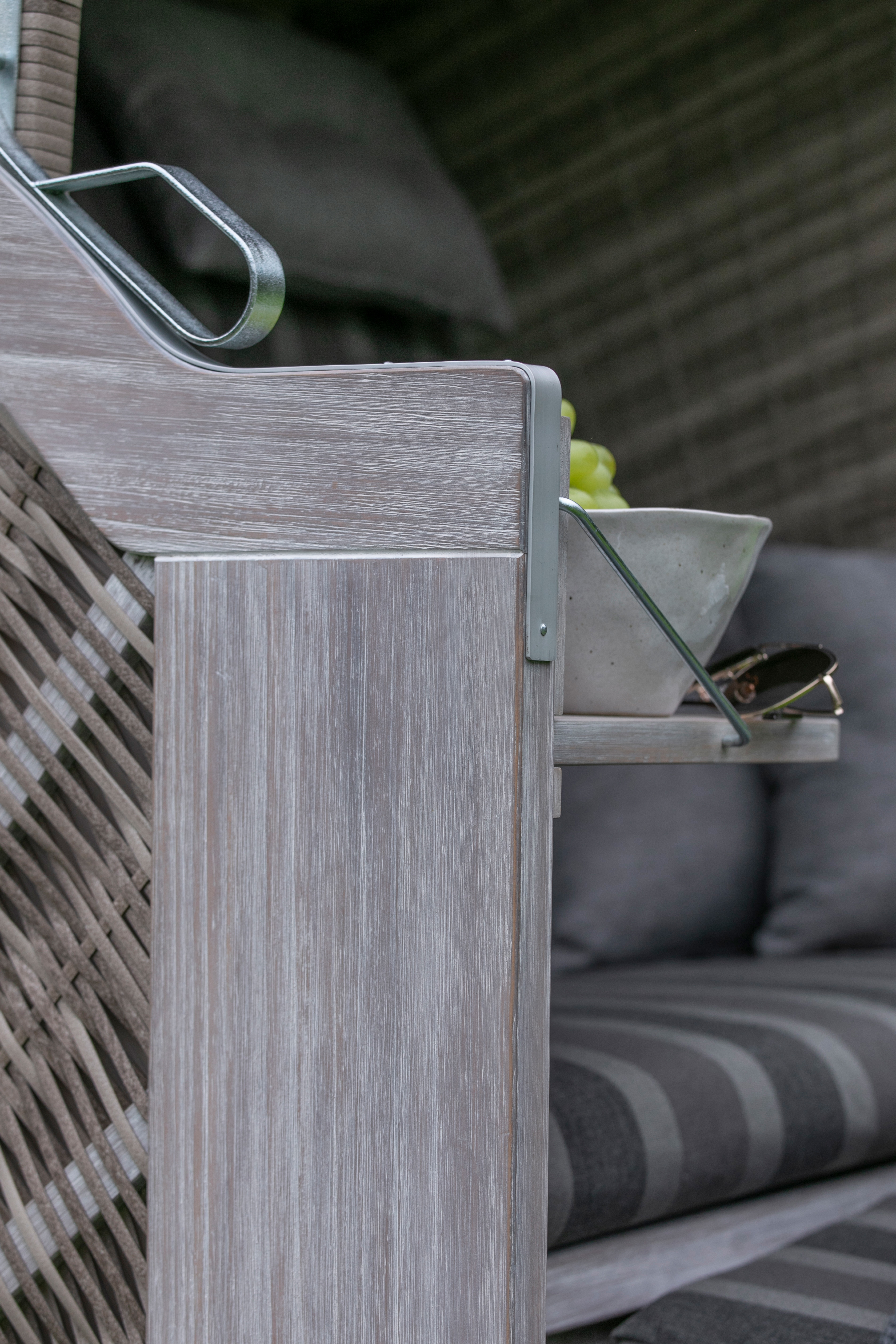 - Pinienholz, gebürstet / witterungs- und UV-beständiges PE-Geflecht