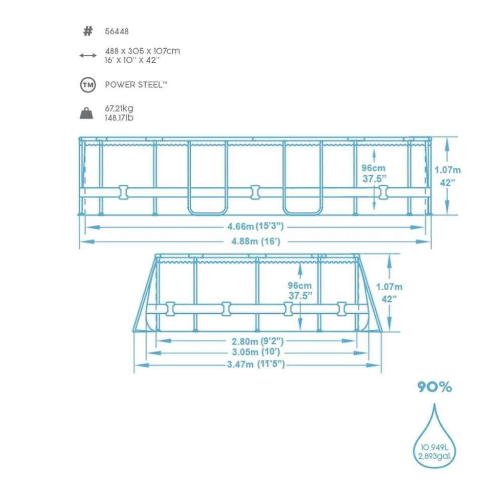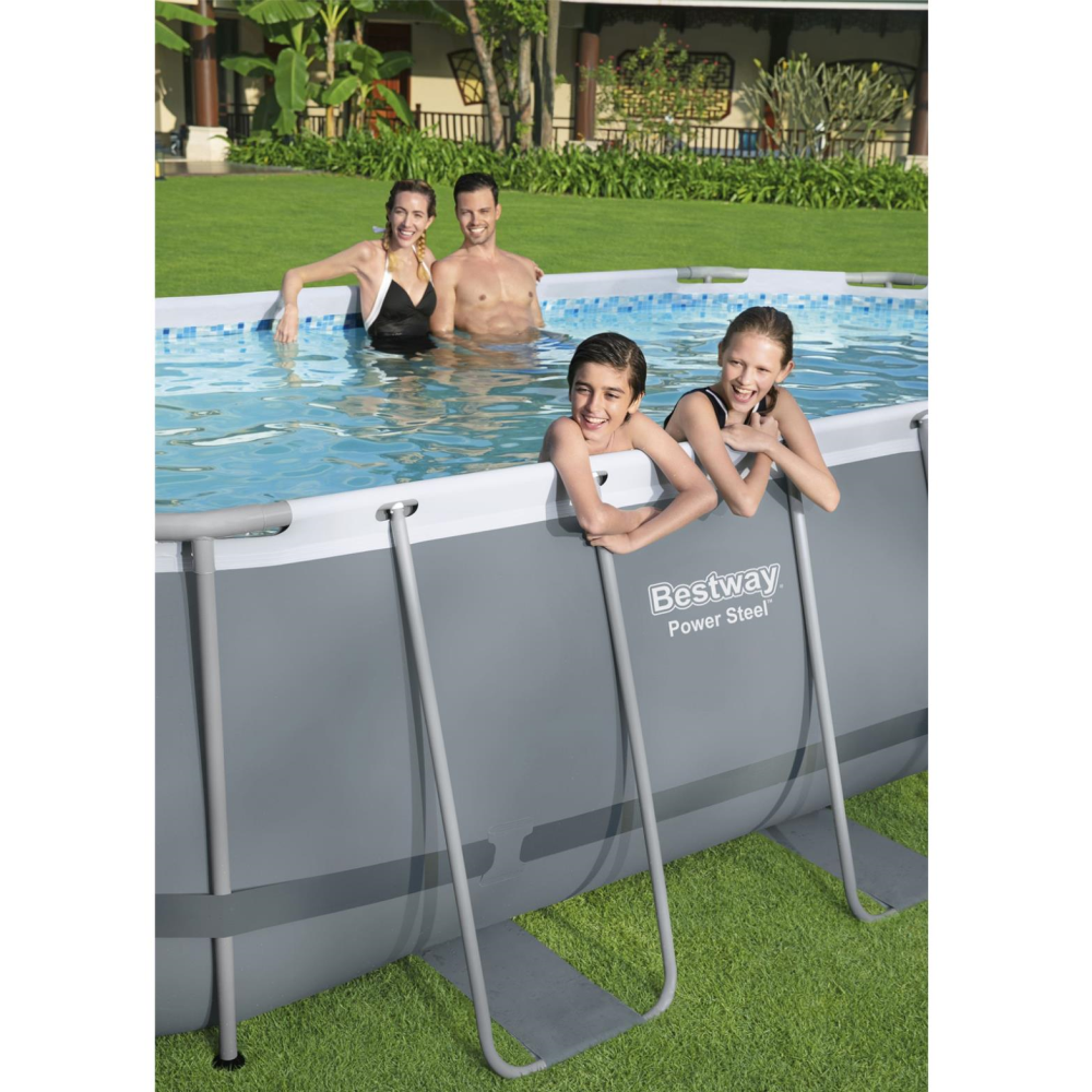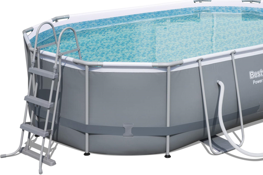 Der Power Steel Frame Pool von Bestway ist die optimale Wahl für sommerlichen Badespaß im eigenen Garten. Mit seiner ovalen Form und einer Wasserkapazität von 10.949 Litern (bei 90 % Befüllung) bietet dieser Pool ausreichend Platz für entspannte Stunden mit Familie und Freunden.