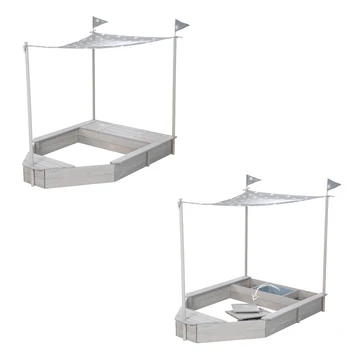 Der einzigartige Sandkasten mit Sonnendach in Schiff-Optik, der nicht nur für stundenlangen Spielspaß sorgt, begeistert auch durch sein ansprechendes Design. Dieser Sandkasten besteht aus besonders wetterfestem und umweltfreundlichem Material, das für Langlebigkeit und Stabilität sorgt. Die grau lasierte Bootsstruktur bietet viel Platz für fantasievolle Spielmomente und regt die Kreativität Ihrer Kinder an.