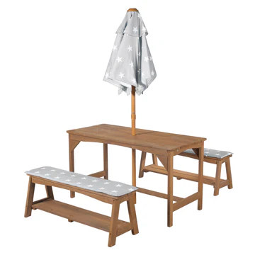 Mithilfe der Sitzgruppe wird der Außenbereich zu einem Ort voller Spaß und Kreativität für Kinder!