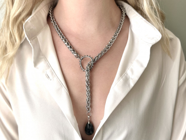 Unsere Edelstahlketten sind zeitlose Schmuckstücke, die den eigenen Stil perfekt widerspiegeln. Diese massive Wheat Edelstahl Kette ist ca. 9mm dick und sehr angenehm zu tragen. Einfach den wunderschönen Larvikit Stein aus Norwegen durch den Kreis ziehen und auf Wunschlänge bringen. Diese Halskette ist das perfekte Accessoire für besondere Anlässe oder um dem Alltagsoutfit einen Hauch von Raffinesse zu verleihen. Sie ist auch ein einzigartiges Geschenk für die Liebsten, um ihnen etwas Besonderes zu schenken. Jedes Stück wird mit Sorgfalt und Liebe zum Detail hergestellt, um sicherzustellen, dass es ein Schmuckstück ist, das sowohl schön als auch einzigartig ist.