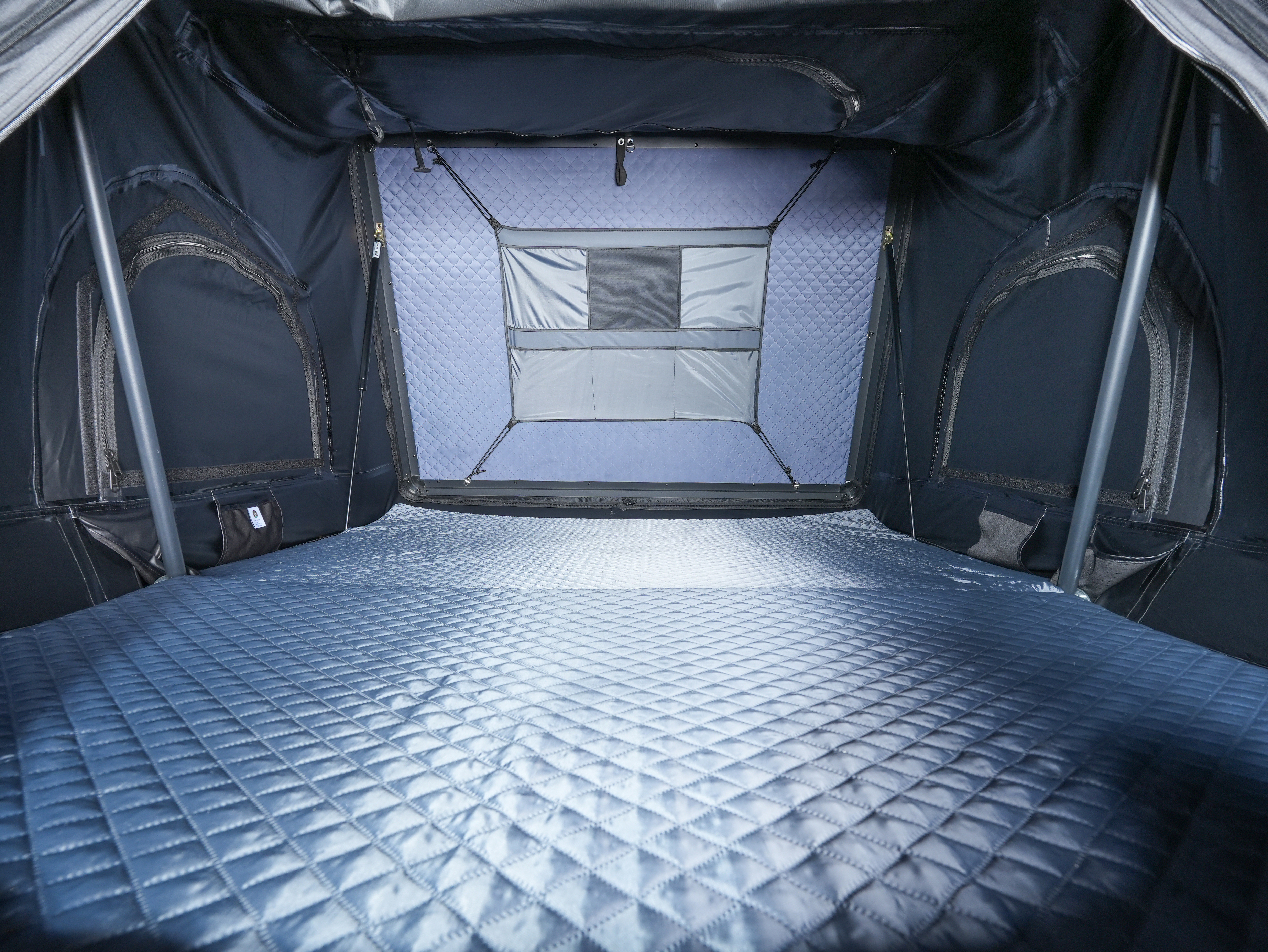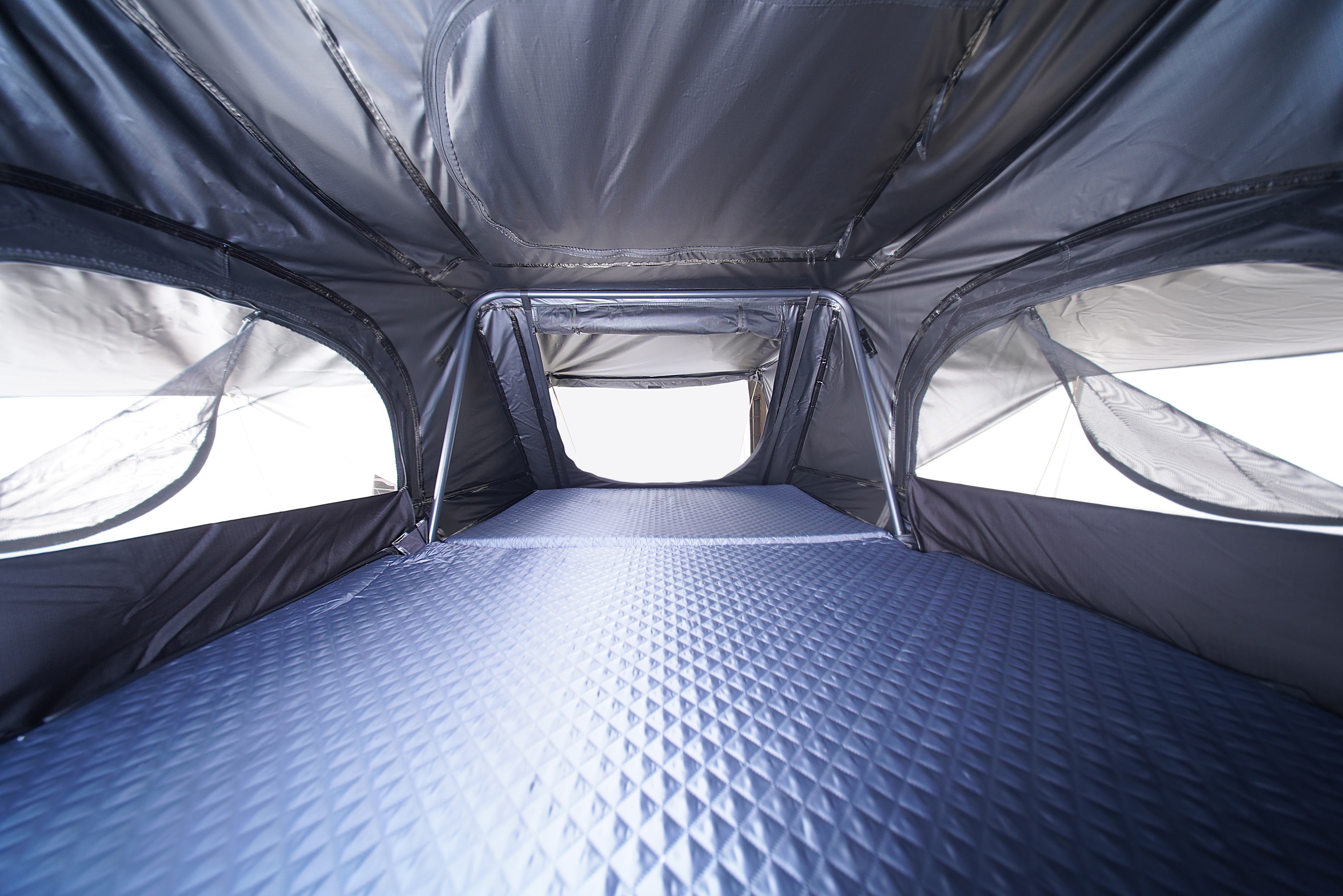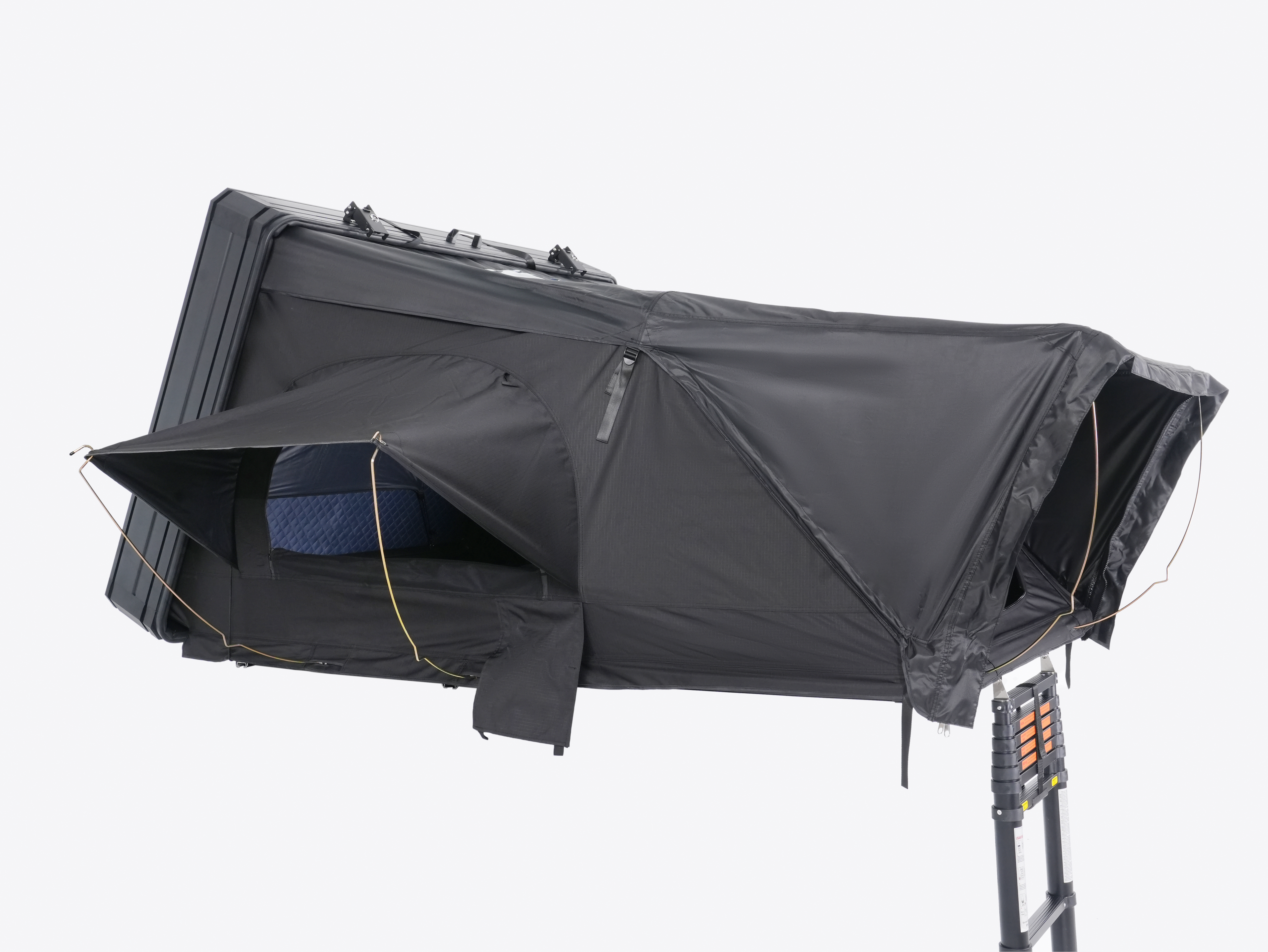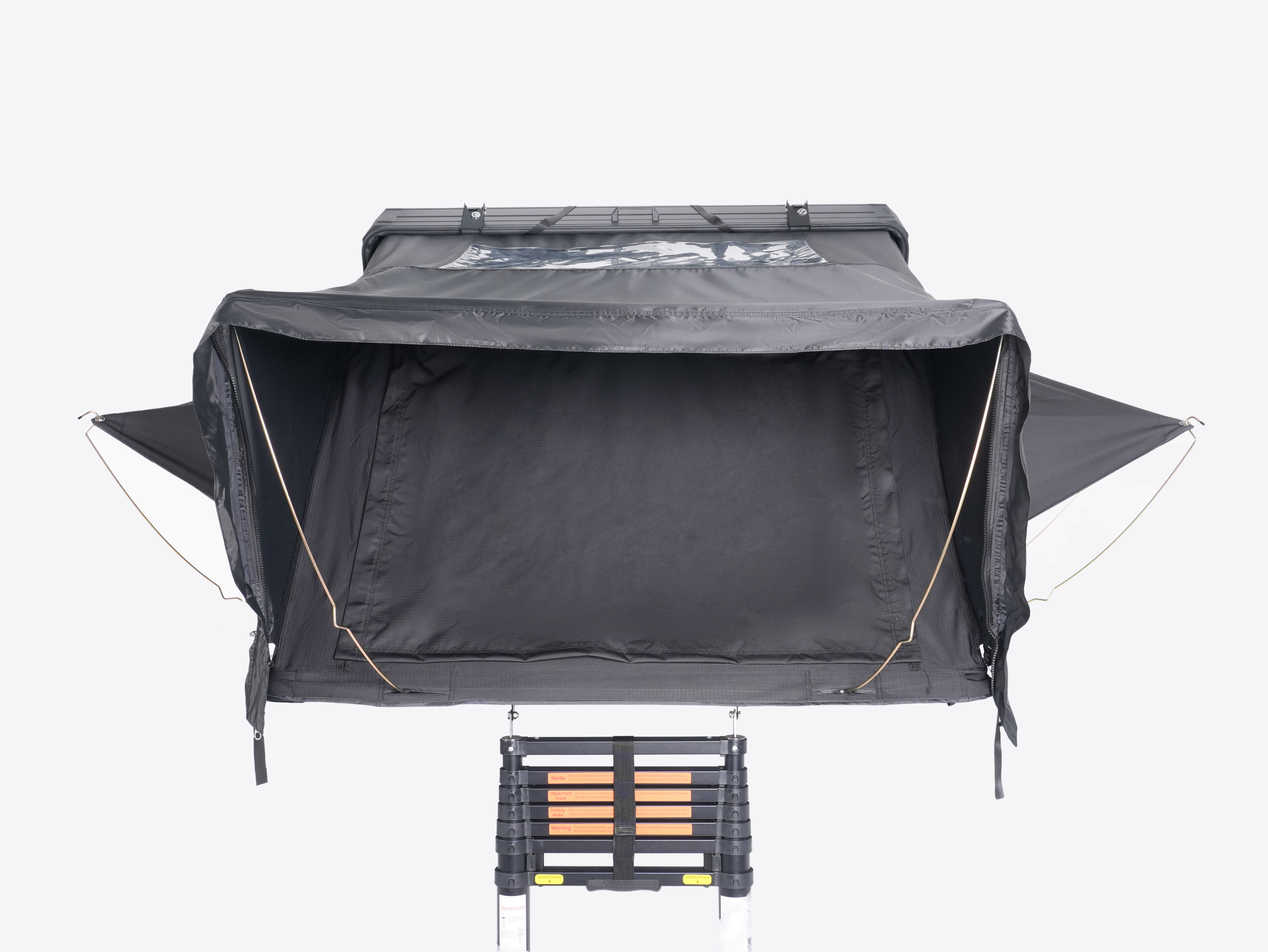 Dank der einfachen Montage auf dem Dachträger jedes Fahrzeugs kannst es schnell loslegen. Zahlreiche Fenster, darunter ein gemütliches Dachfenster, laden zum Sternegucken und Genießen der Natur ein. Der Zugang erfolgt über den stabilen ausgeklappten Boden und eine ausfahrbare Aluleiter, die für sicheres Auf- und Absteigen sorgt.