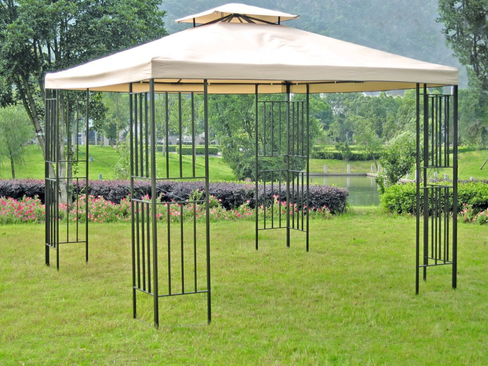Das Dach des Pavillons besteht aus strapazierfähigem Polyester mit einer Dichte von 180 und präsentiert sich in einem ansprechenden Beigeton. Es schützt vor direkter Sonneneinstrahlung, sodass man seine Outdoor-Aktivitäten bei verschiedenen Wetterbedingungen in vollen Zügen genießen kann.
