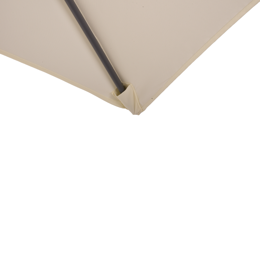 Der Sonnenschirm besteht aus wasserabweisendem Polyester, das nicht nur Schutz vor direkter Sonneneinstrahlung bietet, sondern auch leichten Regen abweist. Obwohl eine zusätzliche UV-Beschichtung nicht vorhanden ist, reduziert das Material die UV-Strahlung effektiv, sodass man unbesorgt die Sonne genießen kann.