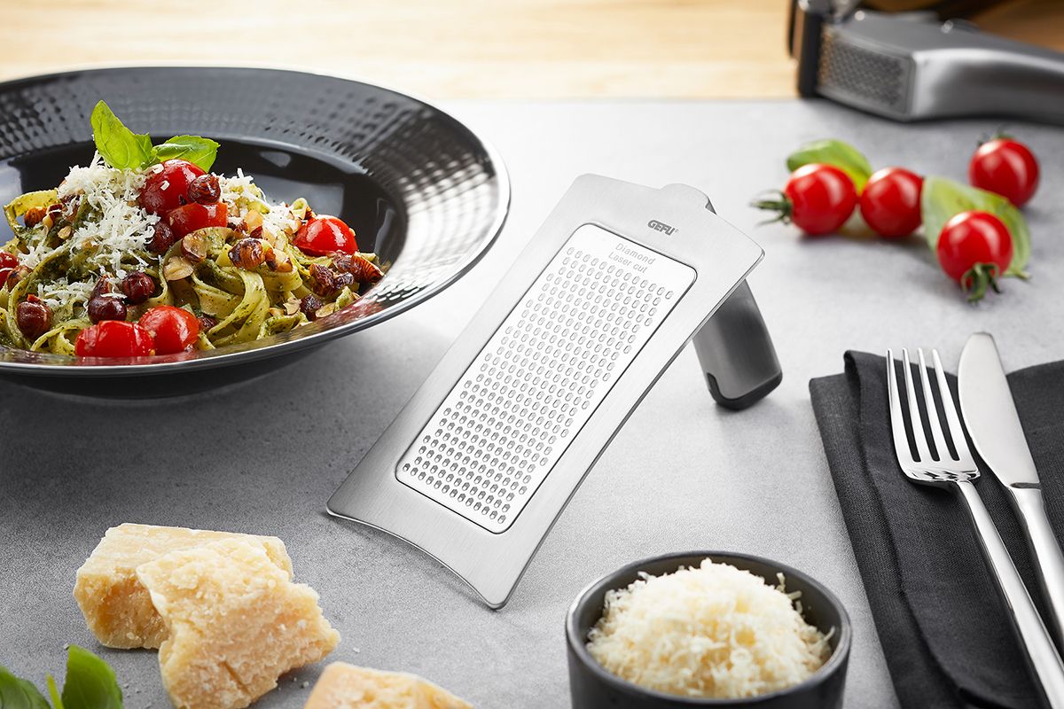Die feine Reibfläche mit DIAMOND LASER CUT-Technologie sorgt für außergewöhnliche Schärfe und müheloses Reiben. Ihr einzigartiges Design, inspiriert von Diamanten, garantiert nicht nur ein brillantes Ergebnis, sondern auch ein ansprechendes Aussehen.