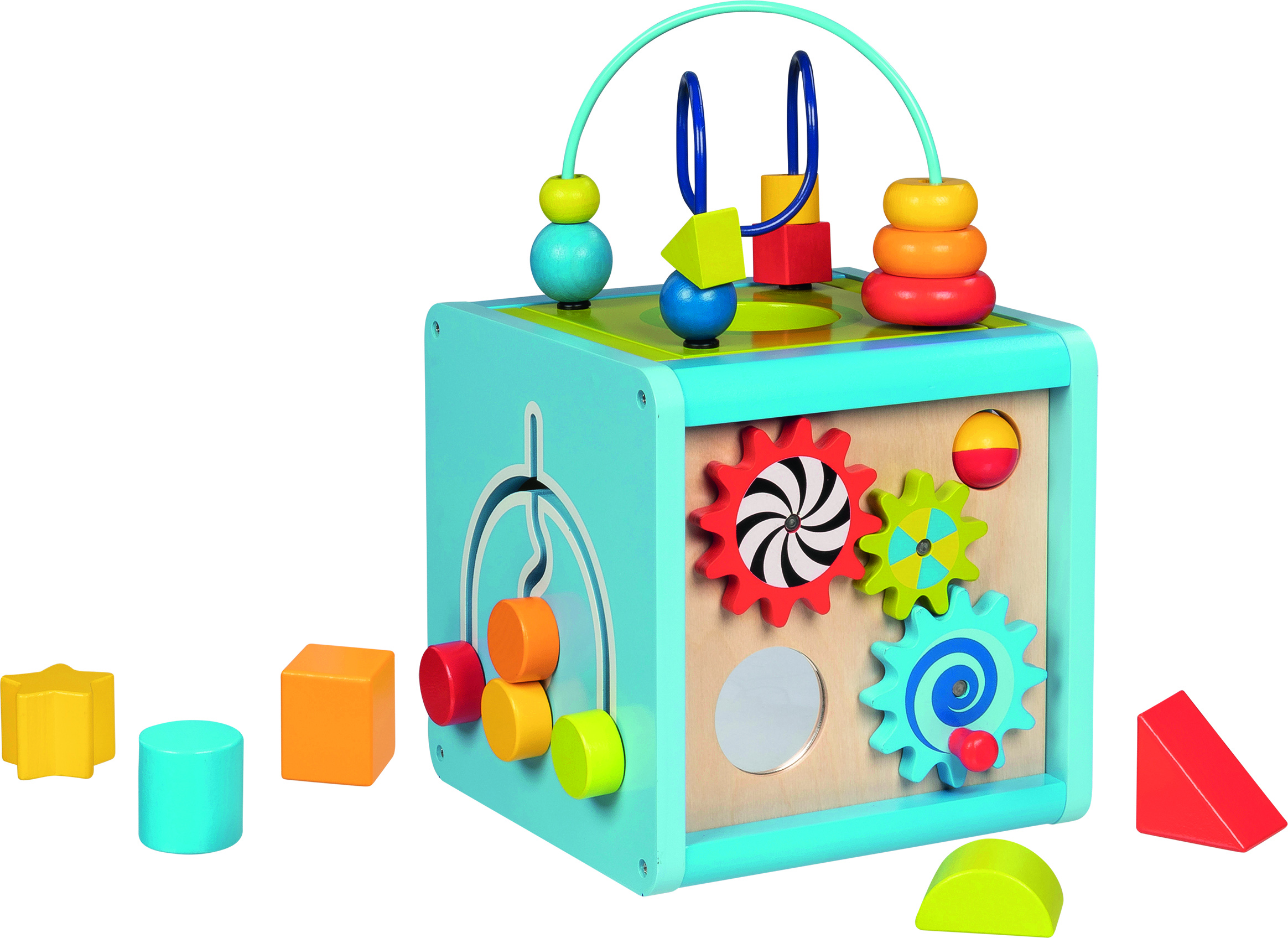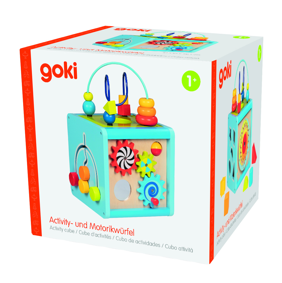 Beim goki-Activity-Würfel ist der Name Programm. Keine Fläche bleibt ungenutzt. Kinder können drehen, sortieren und verschieben, was alle Sinne und motorischen Fähigkeiten animiert und aktiviert. Um diesen hohen Anforderungen standhalten zu können, wurde das Spielzeug entsprechend robust konzipiert.