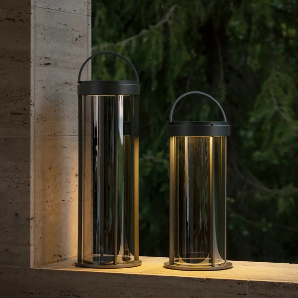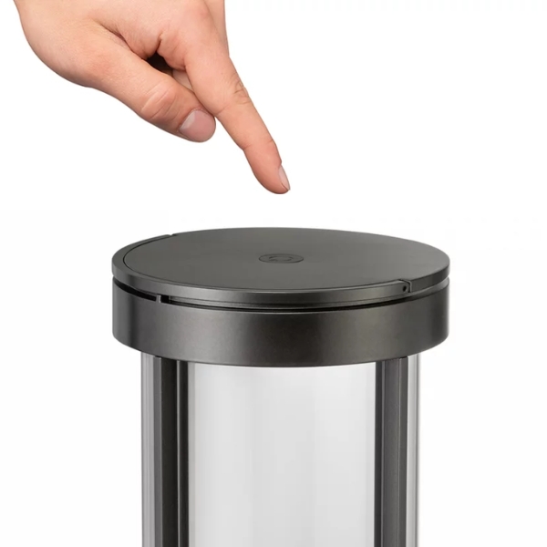 Die Mobile LED-Leuchte "MITURO" von Peter Lienhart ist ein wahres Designstück. Der Korpus aus Aluminium scheint das Licht einzufangen und verleiht der Leuchte eine moderne und edle Optik. Das Besondere an der MITURO ist die verdunkelte Glasröhre, die für ein atmosphärisches Rundumlicht sorgt. Oben auf der Leuchte befindet sich ein dezenter Griff, der das Tragen und Platzieren erleichtert.
