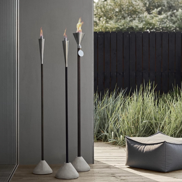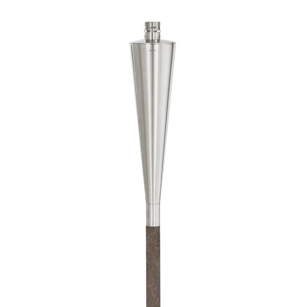 Die Orchos Gartenfackel von Nina Thöming begeistert mit seiner edlen Optik. Die Gartenfackel wird aus poliertem Edelstahl und Hartholz gefertigt.