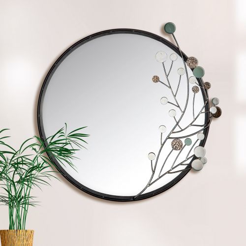 Spiegel "Twig" rund Blumendesign