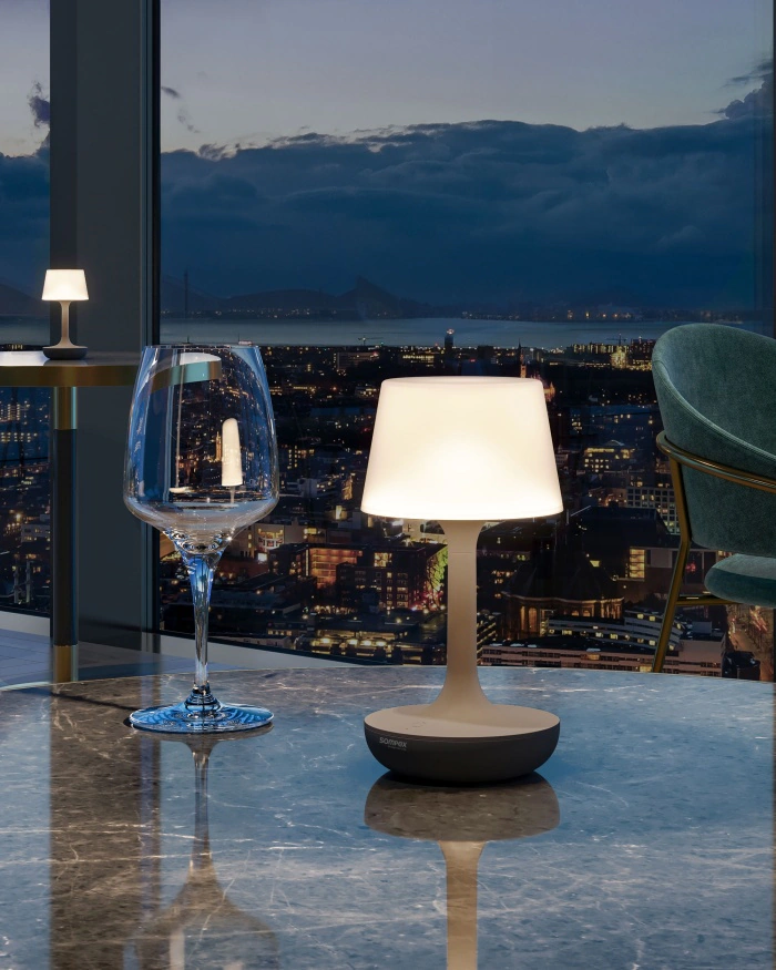 Die GINN Akku-Tischleuchte kombiniert modernes Design mit intelligenter Lichttechnologie. Ausgestattet mit einem integrierten Akku ermöglicht sie kabellosen Einsatz in Innen- und Außenbereichen. Drei warmweiße Farbtemperaturen (2700K, 3500K, 4000K), zwölf RGB-Farben sowie ein sanfter 7-Minuten-Farbwechsel schaffen flexible Lichtstimmungen – vom gemütlichen Ambiente bis zur farbigen Akzentbeleuchtung.