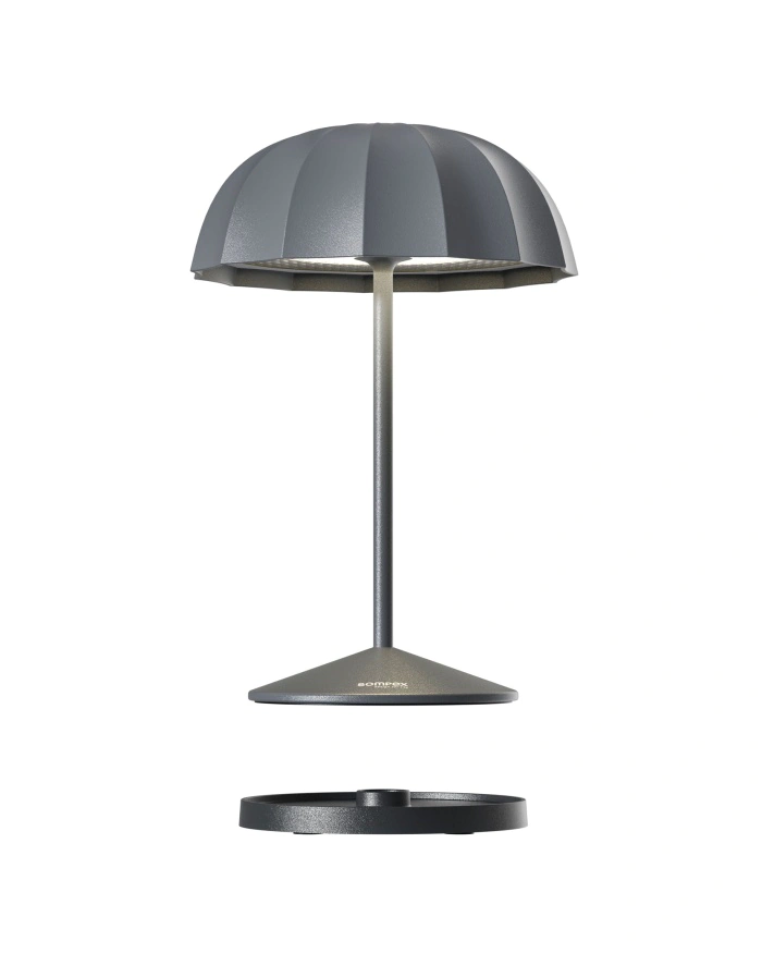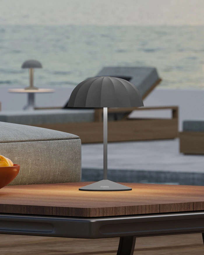 Die OMBRELLINO Akku-Tischleuchte vereint sommerliches Design mit moderner Technik. Die Leuchte in ikonischer Sonnenschirm-Optik sorgt mit einem leistungsstarken Akku für bis zu 78 Stunden kabelloses Licht – ideal für den Innen- und Außenbereich.
