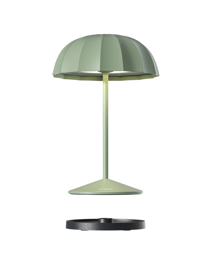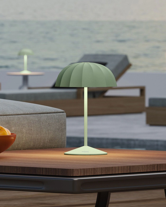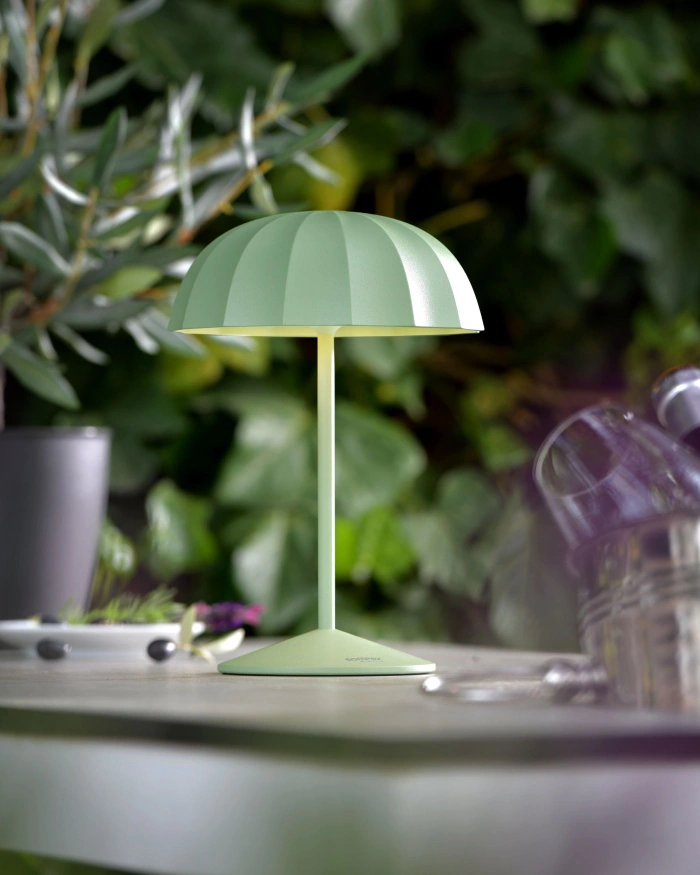Die OMBRELLINO Akku-Tischleuchte vereint sommerliches Design mit moderner Technik. Die Leuchte in ikonischer Sonnenschirm-Optik sorgt mit einem leistungsstarken Akku für bis zu 78 Stunden kabelloses Licht – ideal für den Innen- und Außenbereich.