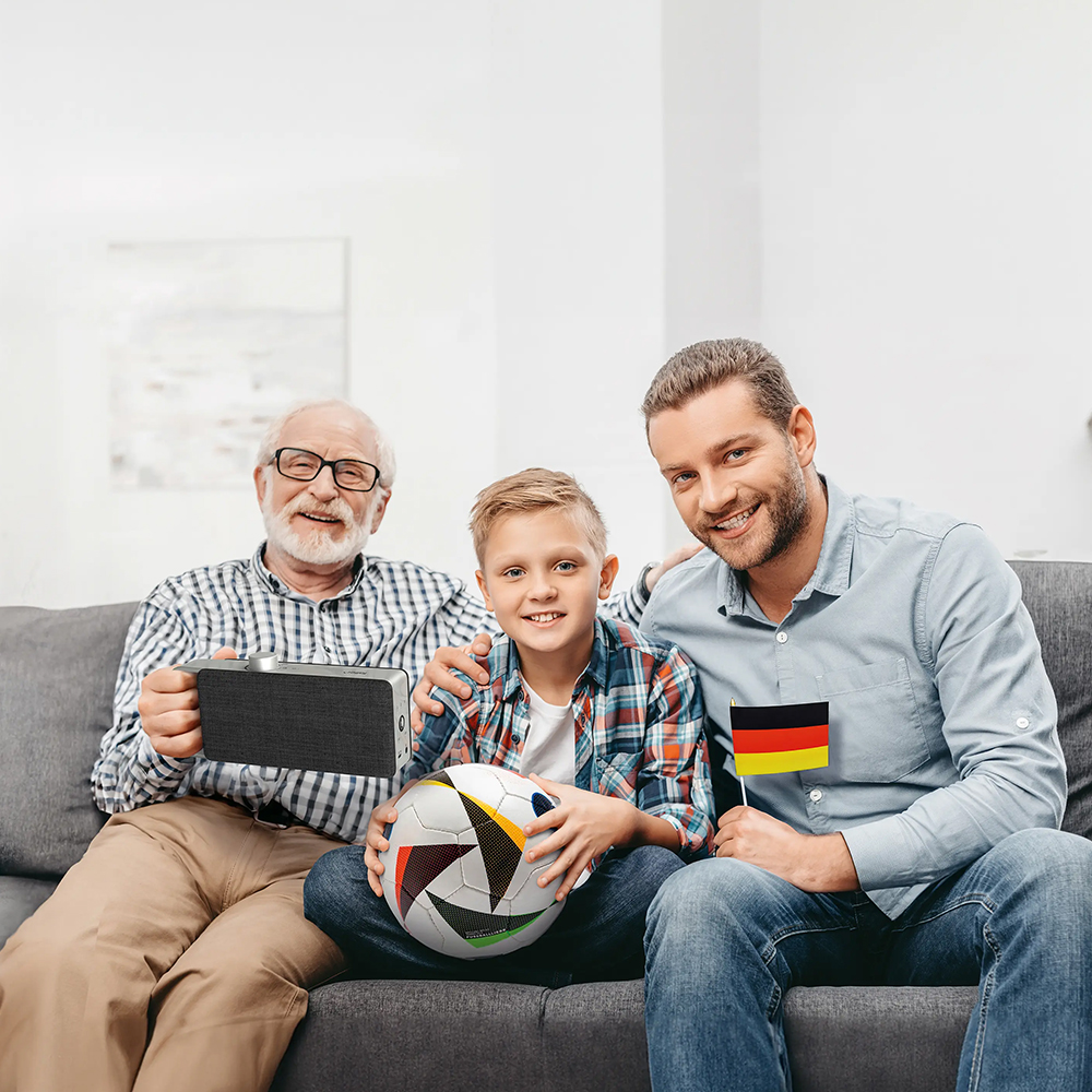 Unser tragbarer TV Lautsprecher bringt den Fernsehton direkt zu Ihnen und hebt dank innovativer Technologie die Stimmen hervor. Störende Nebengeräusche werden durch den TV Hörverstärker dabei aktiv herausgefiltert, sodass Sie jedes einzelne Wort klar und deutlich hören können.