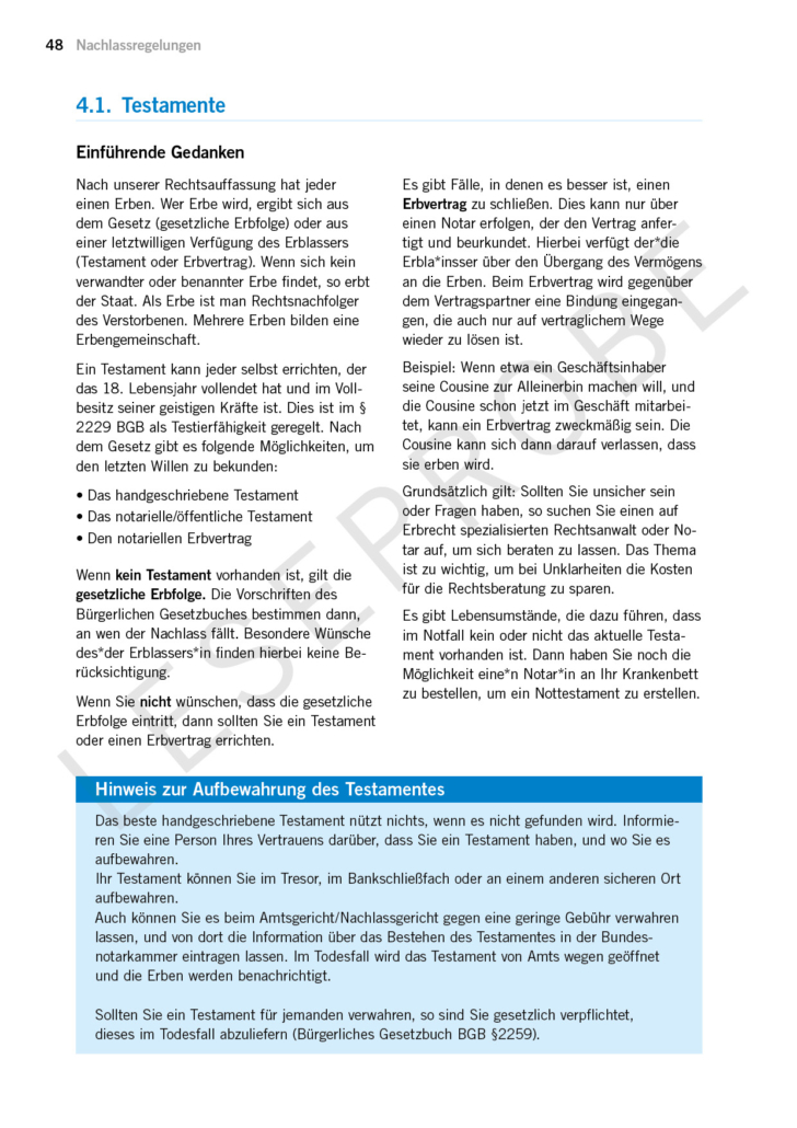 - Testamentarische Belange