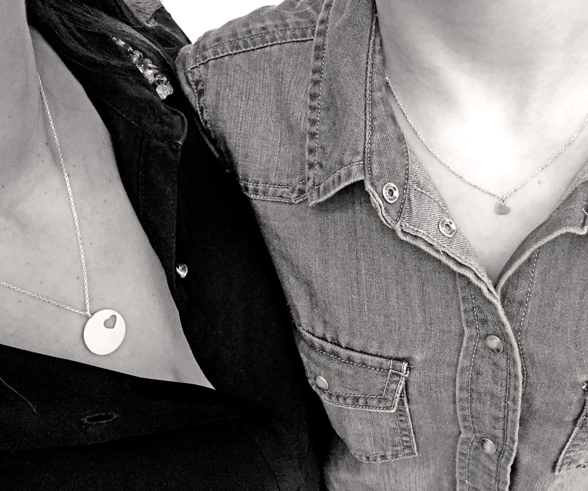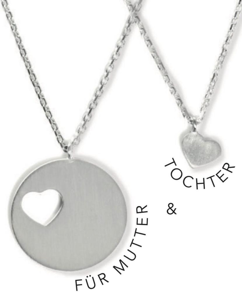 Dieses Kettenset ist ein perfektes, persönliches Geschenk zur Geburt, Taufe, zum Muttertag oder zum Geburtstag der besten Freundin. Die zart funkelnde Silberkette schmiegt sich sanft an das Dekolleté und ist ein dezentes, emotionales Accessoire. Die runde Silberplatte, aus der die Herzen ausgestanzt werden, ist ein besonderer Blickfang.