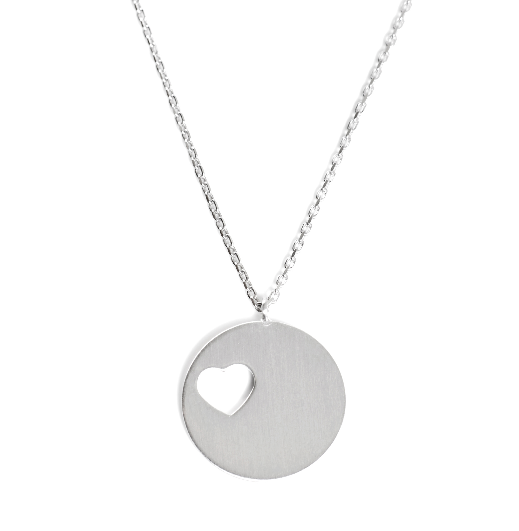 Personalisierung: Der große Kreisanhänger kann mit einem Datum, Namen oder einem kleinen Spruch graviert werden. Das kleine Herz hat Platz für einen Buchstaben.