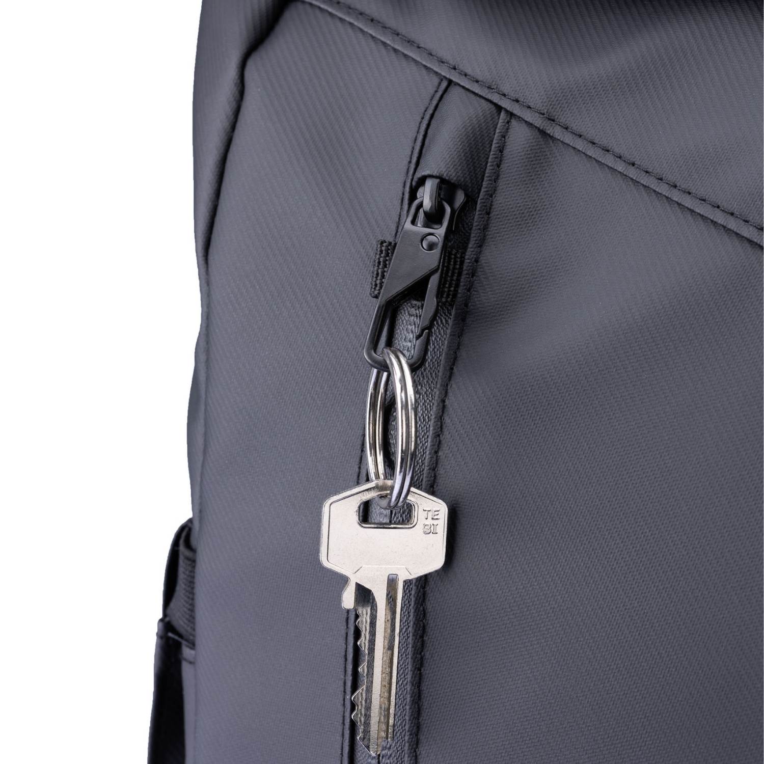 Der Rucksack verfügt über einen rollbaren Verschluss, der mit einem magnetischen Sicherungsverschluss aus Metall gesichert werden kann. Dadurch ist der Inhalt des Rucksacks jederzeit sicher und geschützt.
