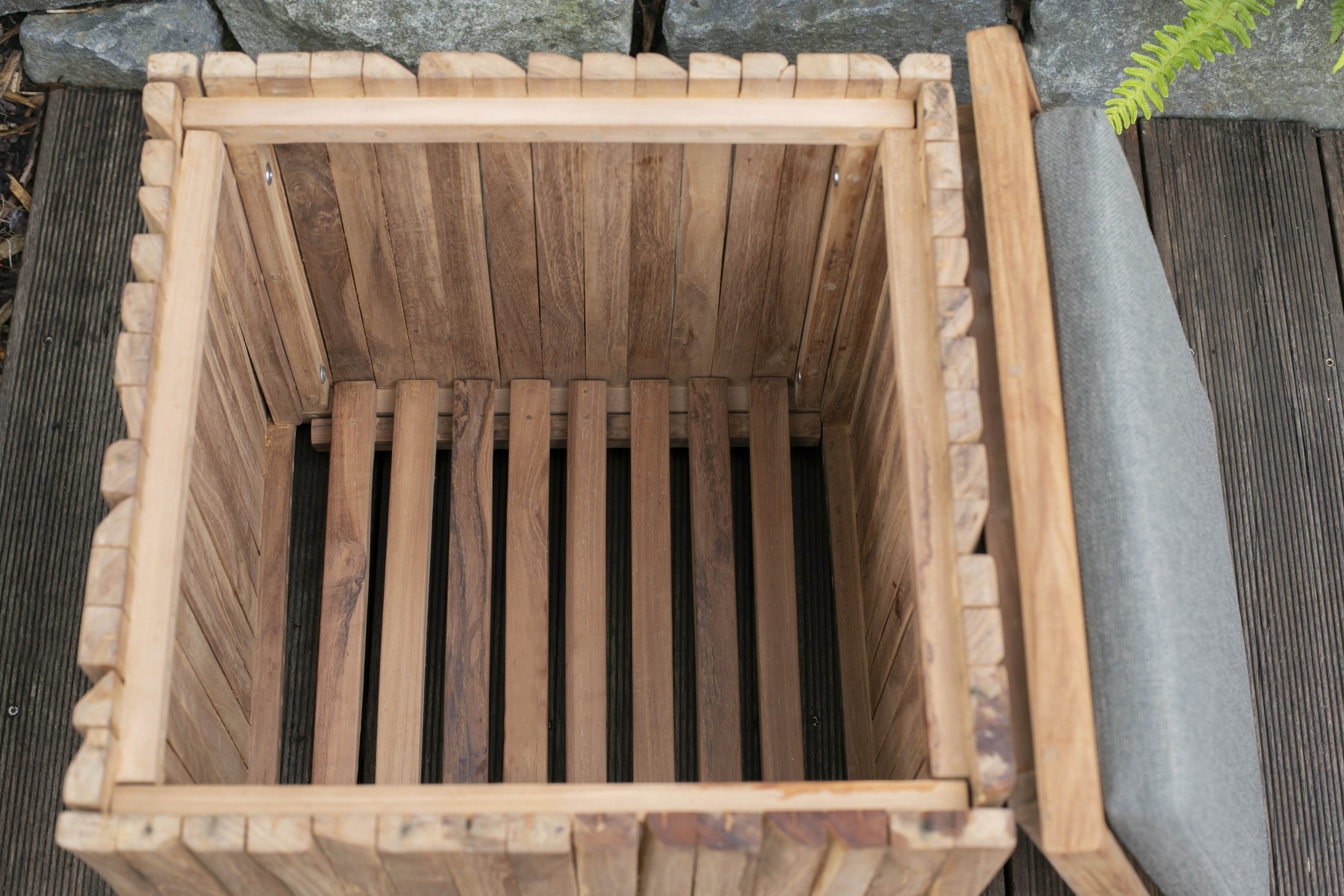 Die Teakbox Oxford vereint Funktionalität und zeitloses Design. Gefertigt aus hochwertigem, zertifiziertem Plantagen-Teakholz, bietet sie eine elegante Ablagefläche für Getränke, Bücher oder Dekoration und dient zugleich als praktischer Stauraum. Dank der robusten und witterungsbeständigen Verarbeitung eignet sie sich ideal für den Einsatz im Garten, auf der Terrasse oder im Wohnbereich. Nachhaltig produziert und mit einer FLEGT-Genehmigung zertifiziert, steht die Teakbox für umweltbewusstes Design und langlebige Qualität.