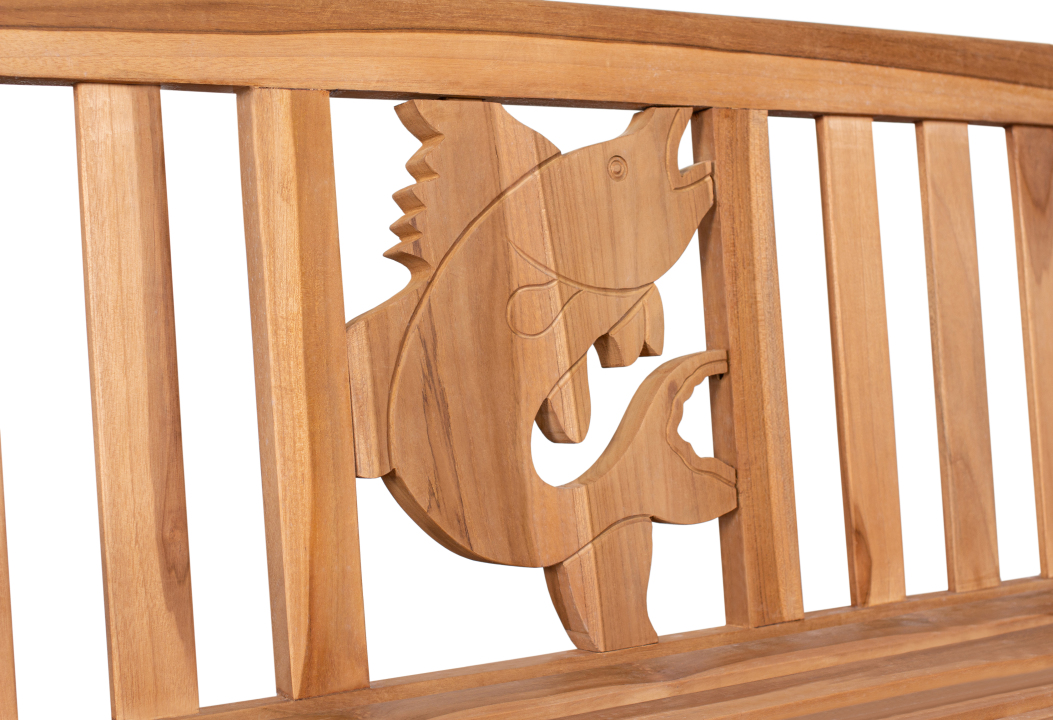 Die Gartenbank aus zertifiziertem Plantagen-Vollholz Teak überzeugt mit zeitloser Eleganz und hoher Stabilität. Die ergonomisch geformte Sitz- und Rückenfläche sowie die glatte, unbehandelte Teak-Oberfläche sorgen für optimalen Komfort. Dank der massiven Verarbeitung ist die Bank besonders witterungsbeständig und eignet sich ideal für Garten, Terrasse oder Balkon. Ein eingearbeitetes Fisch-Motiv im Rückenteil verleiht ihr eine besondere Note. Perfekt für den Outdoor- und Indoor-Bereich.