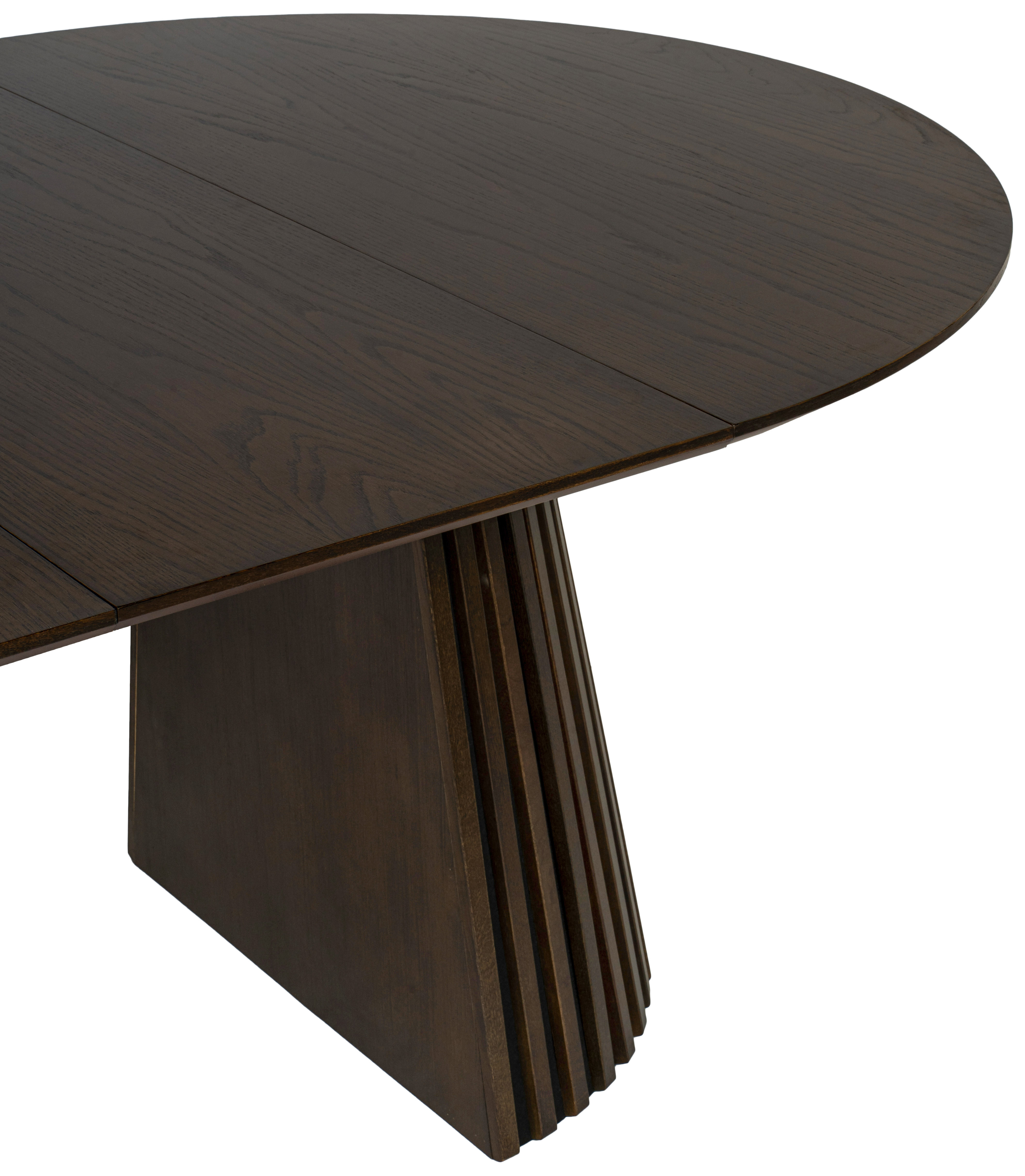 Der Diningtisch Barletta verbindet stilvolles Design mit hochwertigen Materialien und praktischer Flexibilität. Die ovale Tischplatte aus Eiche misst im kompakten Zustand 120 x 120 cm. Mit der Ausziehfunktion lässt sich die Fläche auf beeindruckende 210 x 120 cm vergrößern, was ihn zur idealen Wahl für gemütliche Treffen oder festliche Anlässe macht.