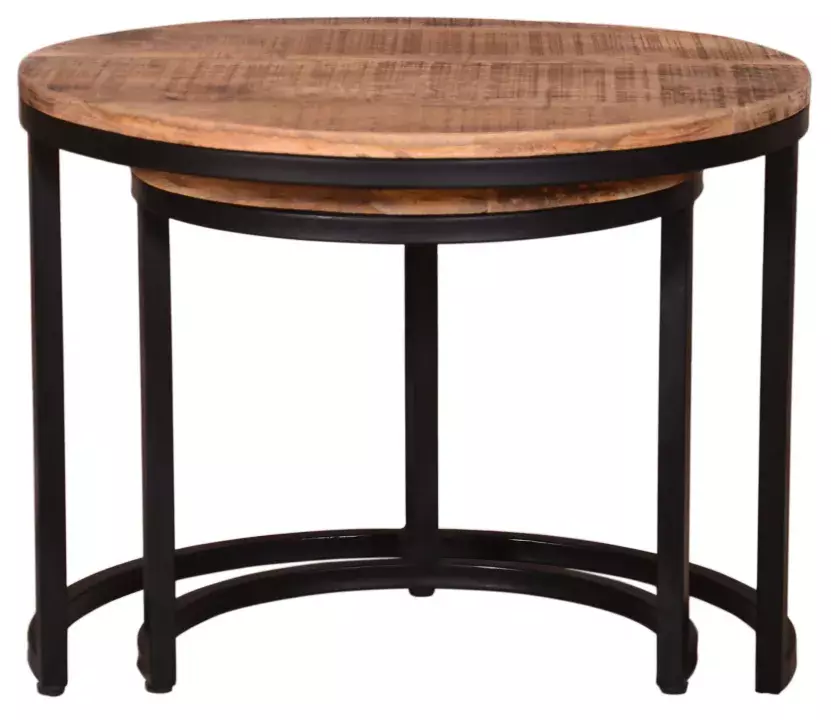 Dieses 2er-Set aus massivem Mangoholz kombiniert natürliche Eleganz mit einem modernen, industriellen Look. Das robuste schwarze Metallgestell bildet einen stilvollen Kontrast zur warmen Holzmaserung und passt perfekt zu verschiedenen Einrichtungsstilen.