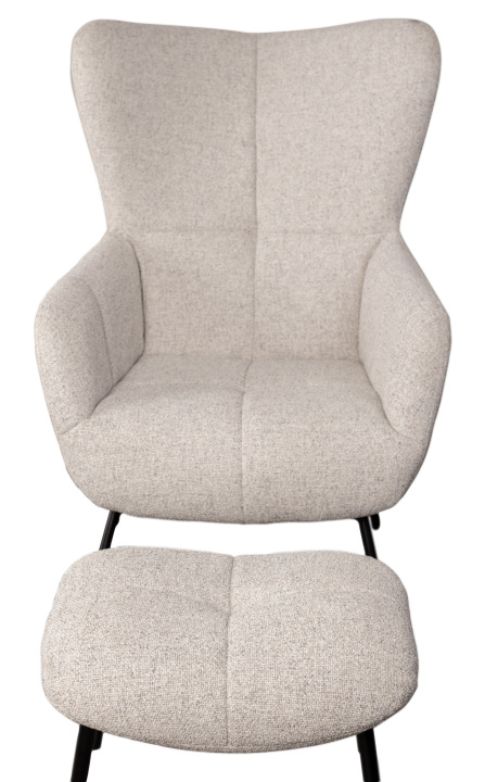 Bequeme Armlehnen und eine geschlossene Rückenlehne sorgen für ausgezeichnete Unterstützung und laden zum Entspannen ein. Der mitgelieferte Fußhocker ermöglicht es, die Beine hochzulegen und vollständig zu entspannen, wodurch jede Pause zu einem kleinen Luxusmoment wird. Die edle Polsterung in Beige verleiht dem Sessel ein zeitloses, elegantes Erscheinungsbild, das sich harmonisch in verschiedene Einrichtungsstile einfügt.