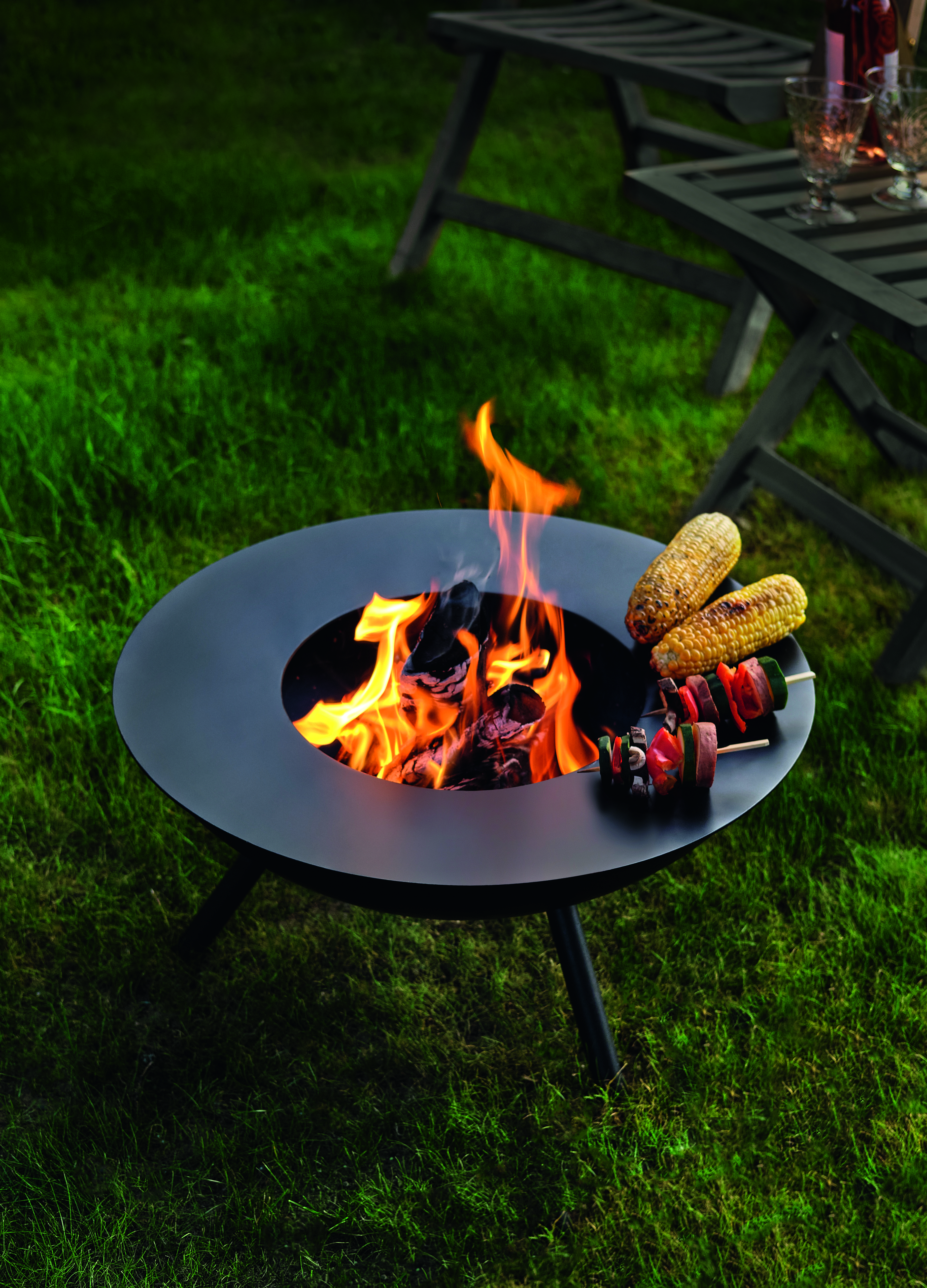 In Kombination mit der passgenauen Grillplatte wird die Schale zur stimmungsvollen Outdoor-Küche: Die kreisrunde Platte bietet ausreichend Fläche für Fleisch, Gemüse und Co. und schafft durch ihre mittige Öffnung freie Sicht auf die Flammen. Die beiliegende Grillzange ergänzt das Ensemble um ein funktionales und formschönes Tool für den geselligen Abend am Feuer.