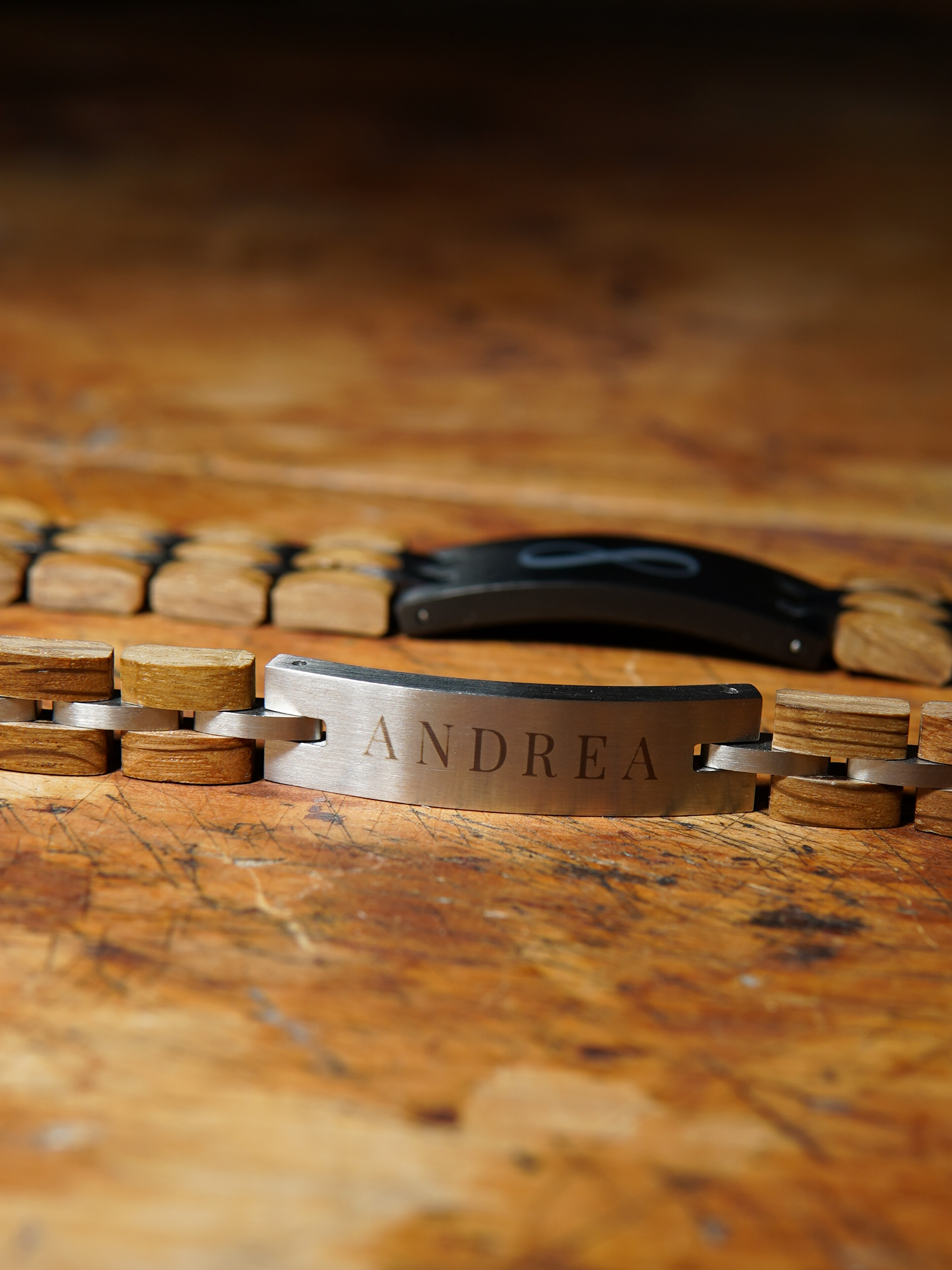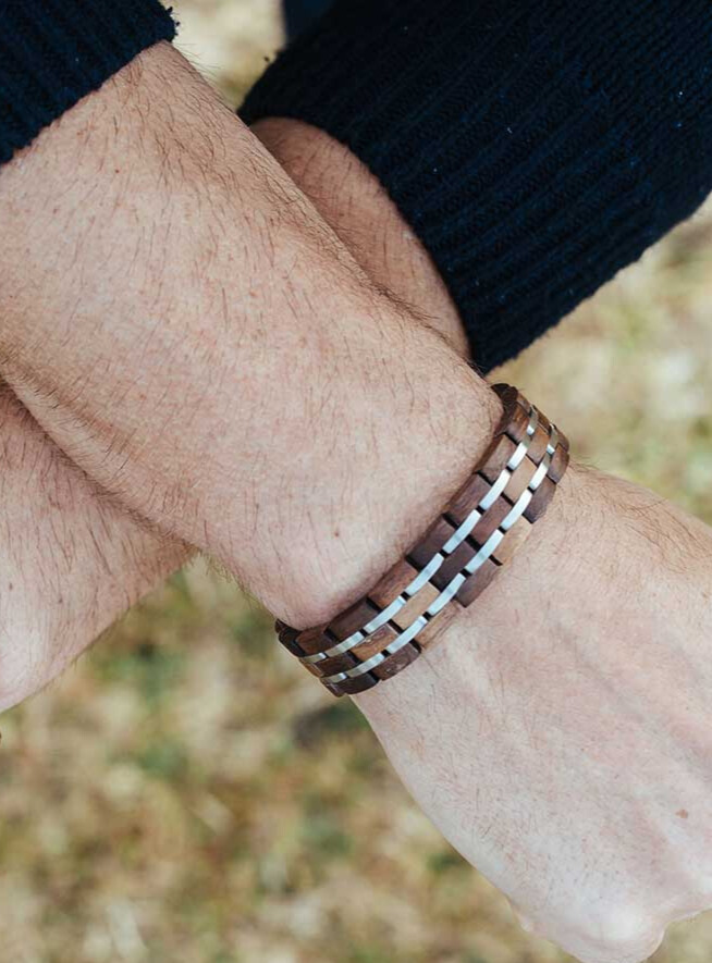 Die Besonderheit dieser Armbänder: Zur Herstellung wird altes Fassholz von Barrique, Whisky oder Rum Fässern wiederverwendet.