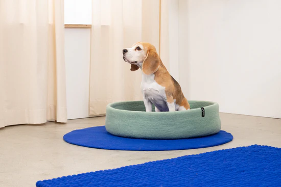 Der handgefertigte Hundekorb aus reiner Schurwolle bietet kleinen und großen Hunden ein Gefühl von Geborgenheit. Erhältlich in den Durchmessern 40 cm oder 60 cm und in drei Farben sowie jeweils zwei verschiedenen Inlays, ermöglicht er zahlreiche Farbkombinationen. Dank des nachhaltigen Materials und des natürlichen Wollfetts ist der Hundekorb pflegeleicht, antibakteriell und reguliert die Temperatur. Dadurch bietet er im Winter eine warme und gemütliche Atmosphäre und im Sommer angenehme Kühle.