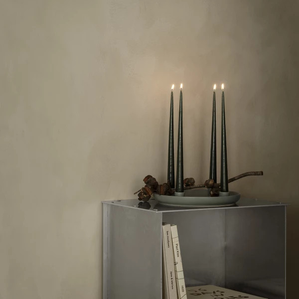 Gefertigt aus Steingut mit einer matten Glasur in verschiedenen Farben, schafft VELA mit nur vier Tafelkerzen eine stimmungsvolle Dekoration.