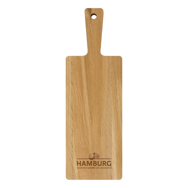 Das stilvolle und robuste Schneidebrett Hamburg - M-Line mit Griff vereint nordische Eleganz und Funktionalität. Hergestellt aus geölter Eiche, überzeugt dieses Schneidbrett nicht nur durch seine Langlebigkeit, sondern auch durch sein ansprechendes Design. Das eingebrachte Hamburg-Motiv verleiht dem Brett eine besondere maritime Note und macht es zum idealen Küchenaccessoire für alle, die die Hansestadt lieben.