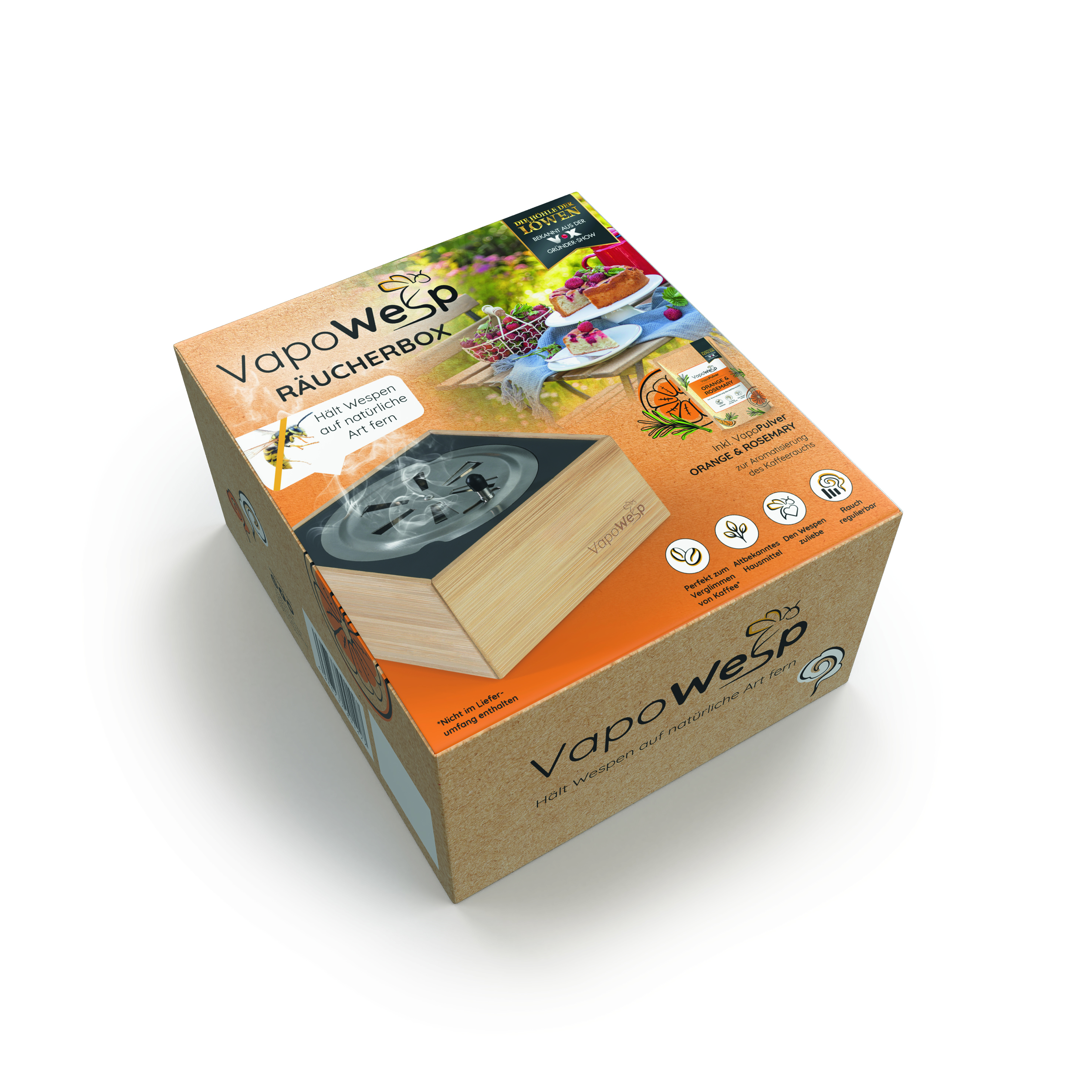 Sommerzeit bedeutet Genuss im Freien – doch Wespen, Mücken und Schnaken können schnell zur Belastung werden. Mit der VapoWesp Räucherbox gelingt eine einfache, natürliche und effektive Methode, um ungebetene Insekten fernzuhalten. Inspiriert vom bewährten Hausmittel des glimmenden Kaffeepulvers wurde die Räucherbox so entwickelt, dass Kräutermischungen langsam und gleichmäßig abbrennen und dabei einen angenehmen Duft verströmen, der Wespen zuverlässig vertreibt.