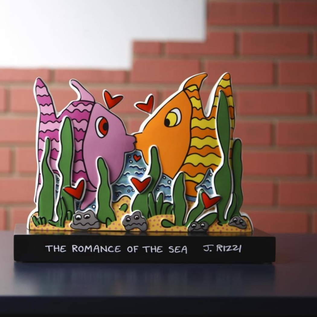Tauchen Sie ein in die bunte und fröhliche Welt des New Yorker Pop-Art-Künstlers James Rizzi. Die Skulptur „The Romance of the Sea“ fängt die Magie des Ozeans auf Rizzi-typische Weise ein: mit leuchtenden Farben, verspielten Details und einer herzlichen Botschaft. Zwei verliebte Fische inmitten einer maritimen Szenerie machen dieses Werk zu einer Liebeserklärung an das Leben und das Meer.