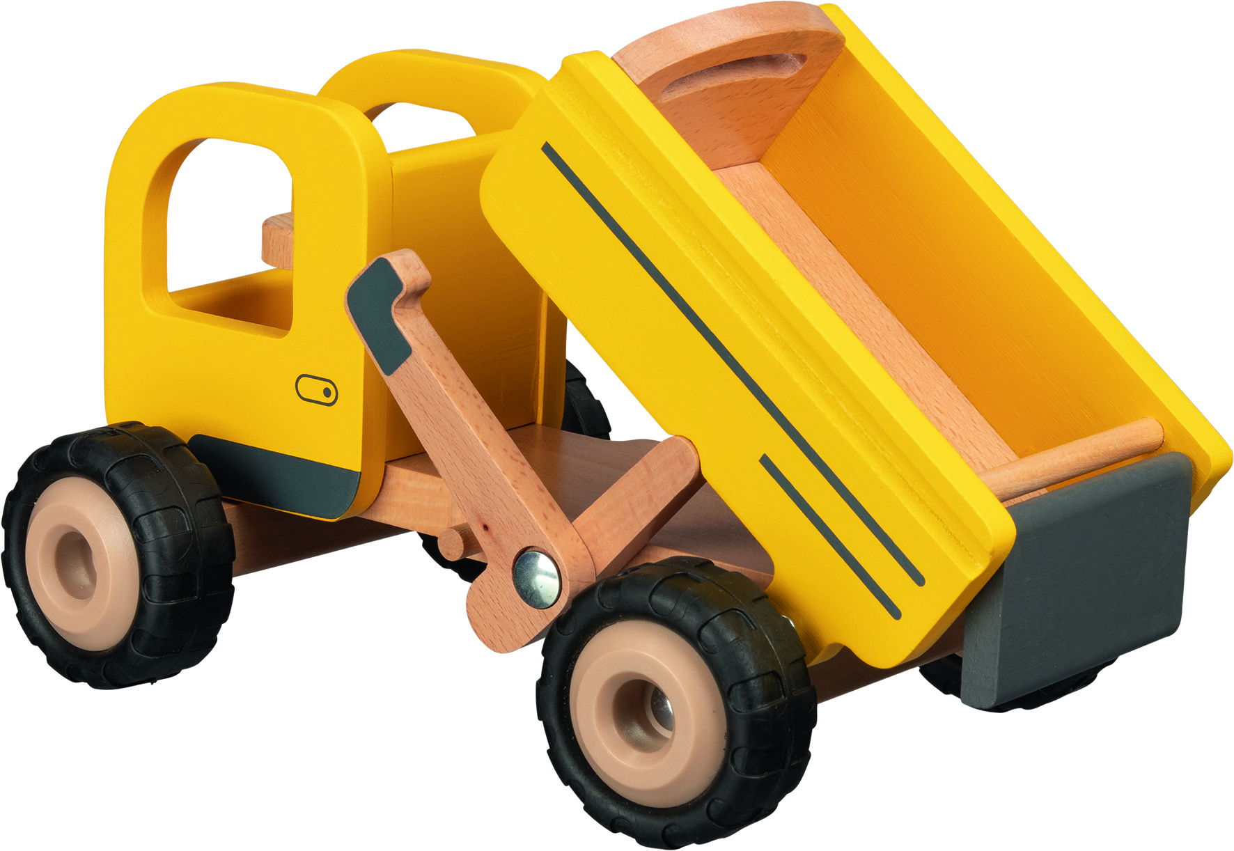 Die kindgerechte Bespielbarkeit steht bei diesem goki-Kippfahrzeug aus Holz im Vordergrund. Ausgestattet mit einer hochwertigen Gummibereifung, leichter Lenkbarkeit und einer einfachen Kippfunktion, ist dieses robuste Baufahrzeug perfekt für kleine Kinderhände gemacht.