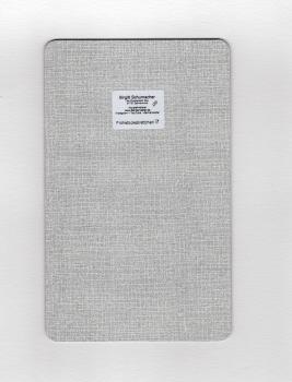 - Rückseite: Mit charakteristischer Leinenstruktur und personalisierbarem Namensaufkleber
