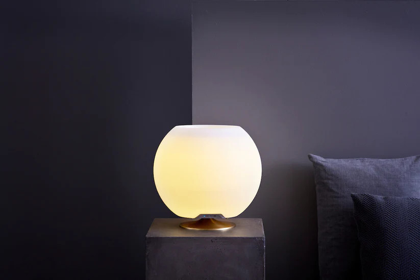 Die Sphere LED-Lampe ist mit 2 verschiedenen Grundplatten erhältlich: Eine gebürstete silberfarbene Grundplatte oder eine messingfarbene Grundplatte, die beide ein zeitgemäßes und dennoch zeitloses Gefühl schaffen.