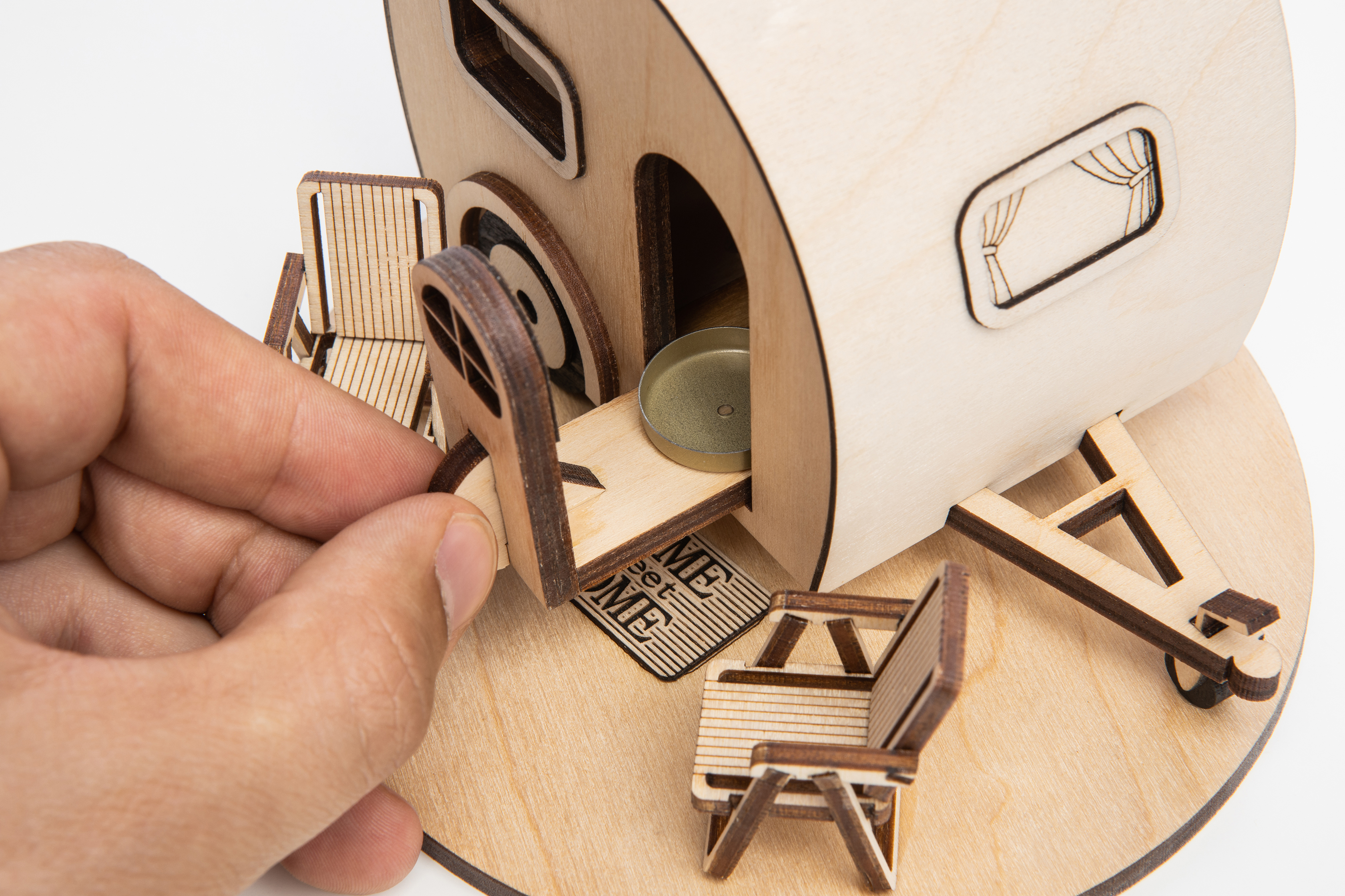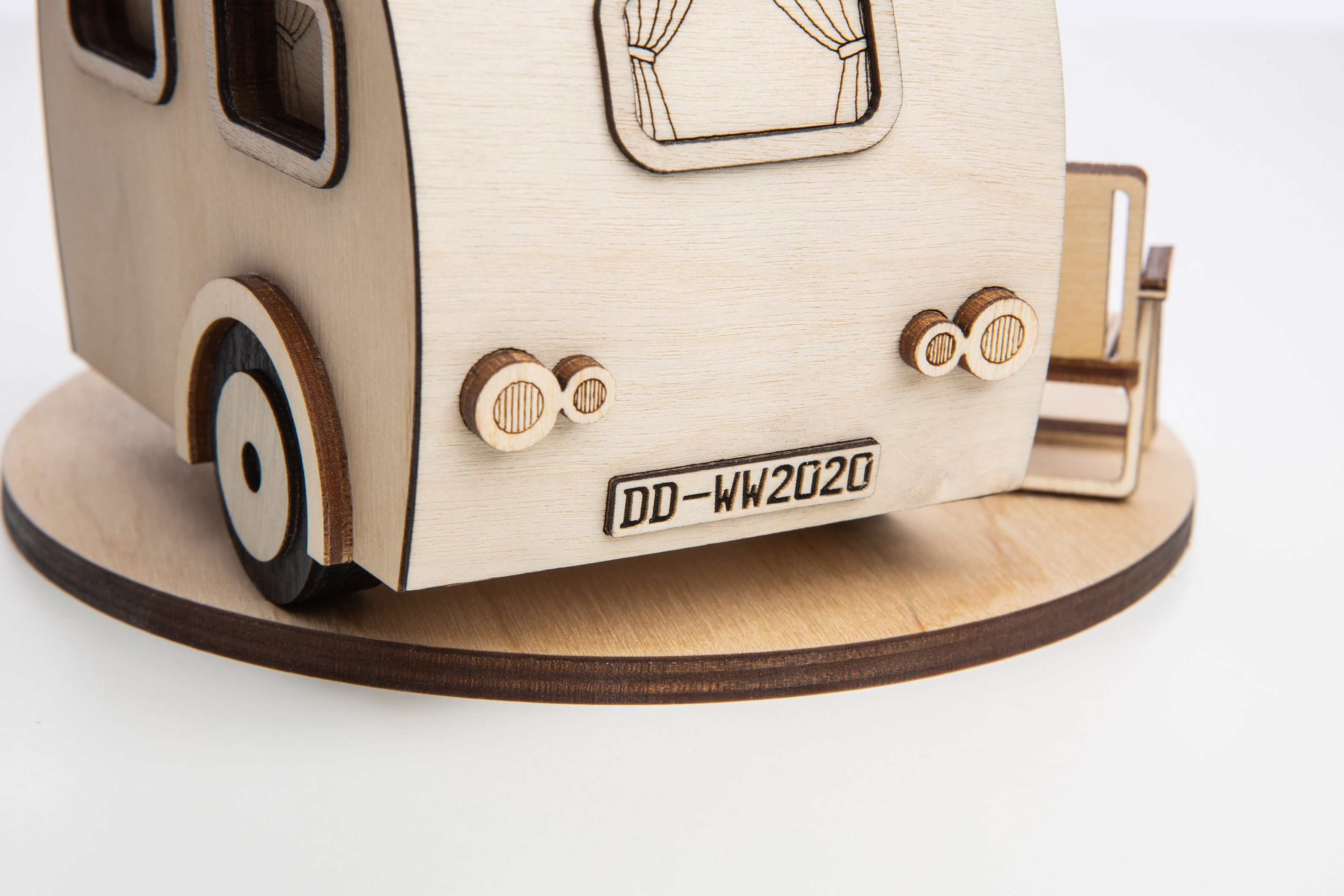 Der in Handarbeit gefertigte Räucherwohnwagen aus verschiedenen Sperrholzstärken (Birkenholz) ist das ideale Geschenk für Ihre Liebsten. Verarbeitet werden ausschließlich Naturhölzer, welche auch nachhaltig sind. Durch das eigene Kennzeichen, welches bei jeder Bestellung inklusive ist, wird der Räuchercamper zum Unikat. Mit seinem geringen Gewicht von nur 150 g ist dieser ein idealer Begleiter für jeden Atmosphärenliebhaber.