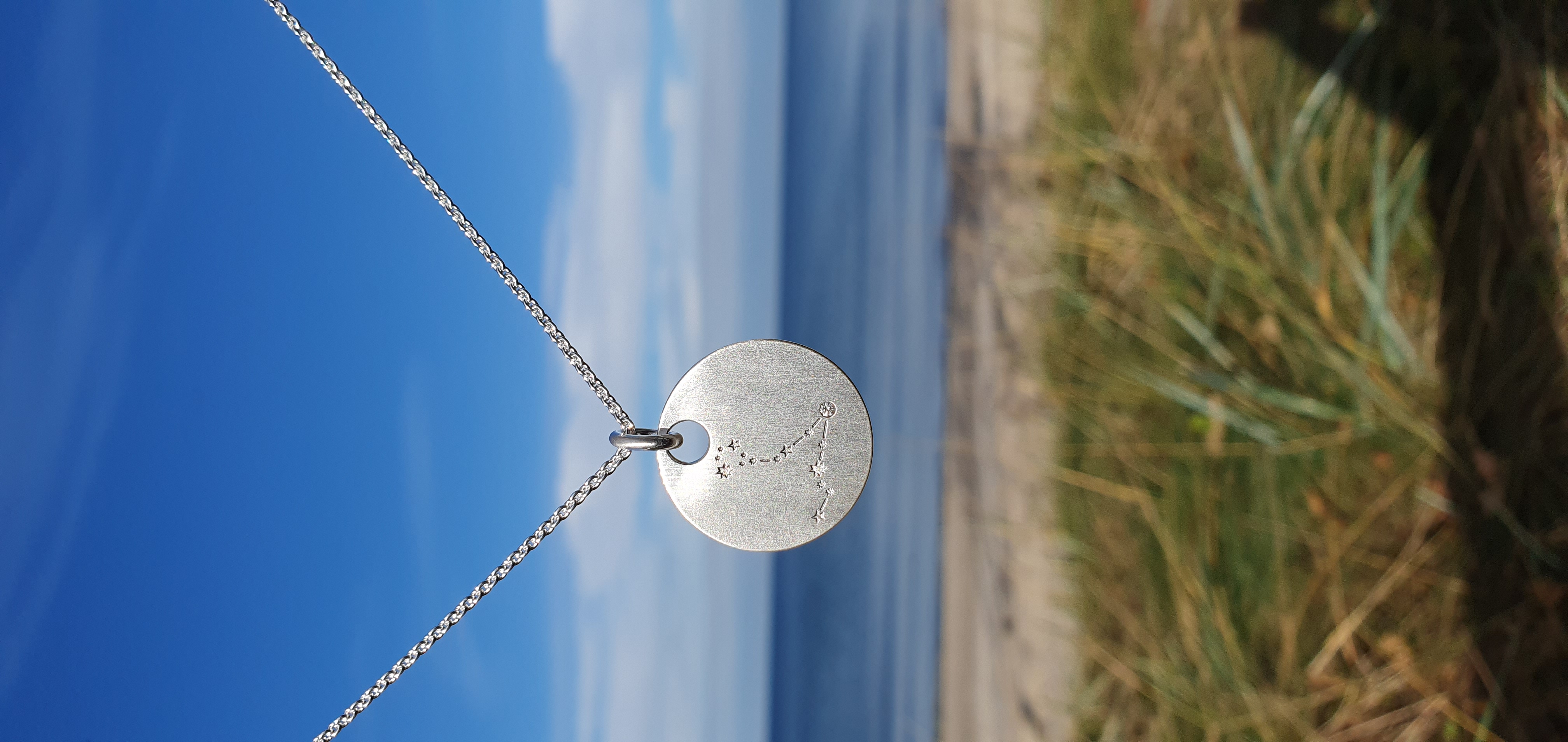 Entdecken Sie unsere exquisite "Kette mit Anhänger Sternbild" – ein zeitloses Schmuckstück, das Eleganz und Individualität vereint. Hergestellt aus hochwertigem Silber, strahlt dieser Anhänger nicht nur Schönheit aus, sondern erzählt auch Ihre persönliche Geschichte.