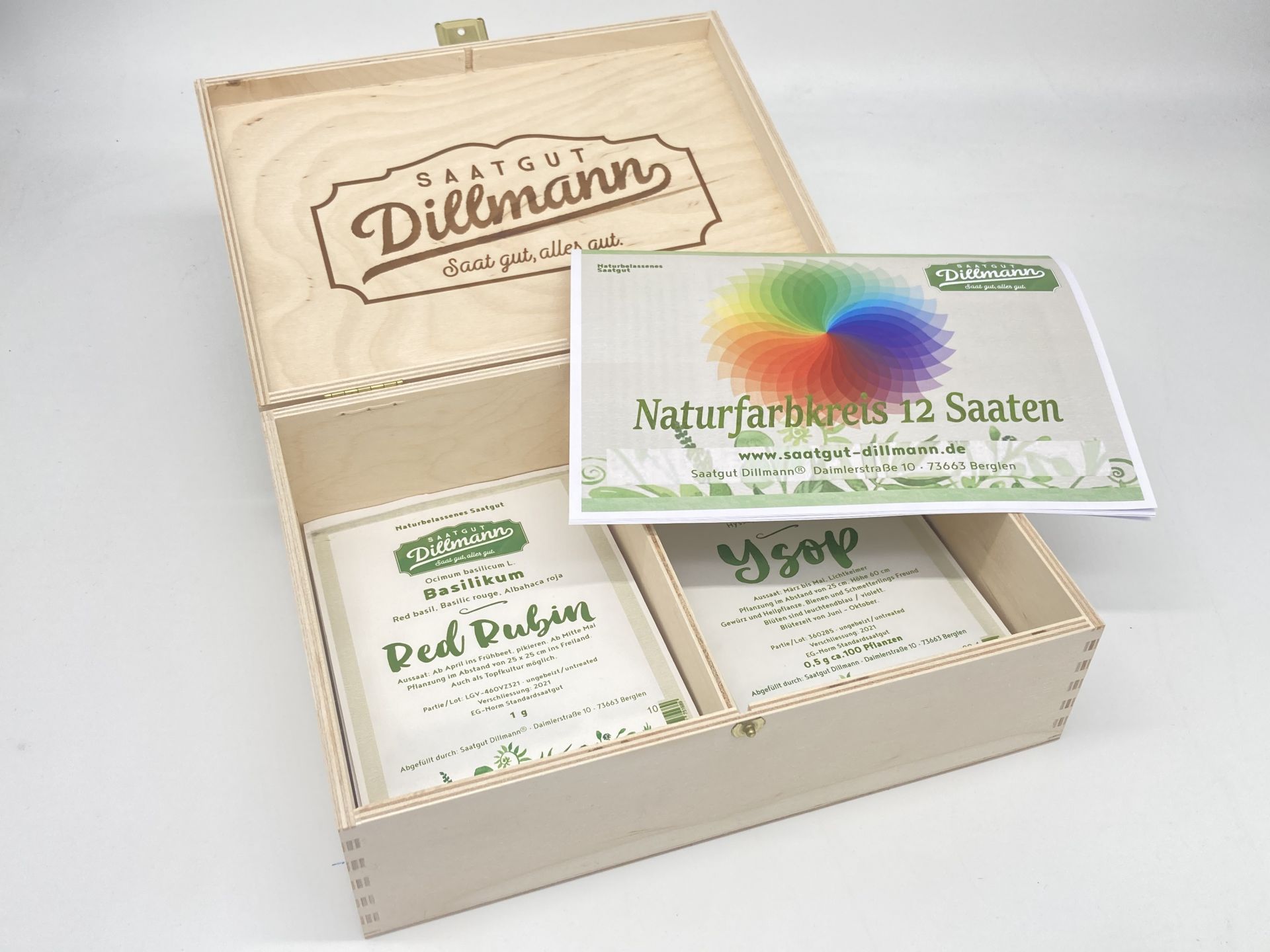 Bio-Saatgut-Holzbox - Naturfarbkreis