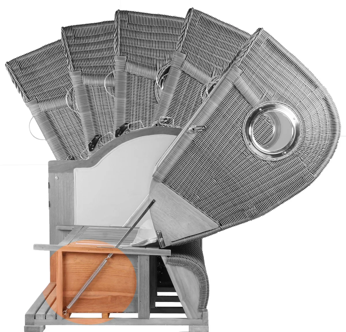 Sein edles PE-Geflecht harmoniert perfekt mit dem attraktiven Farbton des Naturholzes und bildet den richtigen Rahmen für den Strandkorb Berliner Skyline. Die extra dicke Polsterung und ausziehbaren Fußstützen sorgen für zusätzlichen Komfort. Mit dem Liftersystem kann der Oberkorb bequem in verschiedene Liegepositionen verstellt werden.